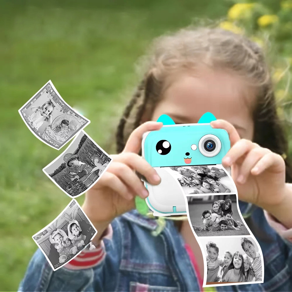 Використання передової технології без чорнила означає, що для друку не потрібен тонер. Камера для миттєвого друку для дітей виготовлена з високоякісного матеріалу ABS, який є ударостійким, нетоксичним і екологічно чистим; На 3 рулонах паперу для друку можна надрукувати до 180 фотографій, він нешкідливий для вашої шкіри та його легко замінити. Дитяча цифрова камера оснащена 2,4-дюймовим екраном IPS HD, щоб забезпечити найкращий догляд за очима вашої дитини. Це все зроблено з урахуванням безпеки дітей!