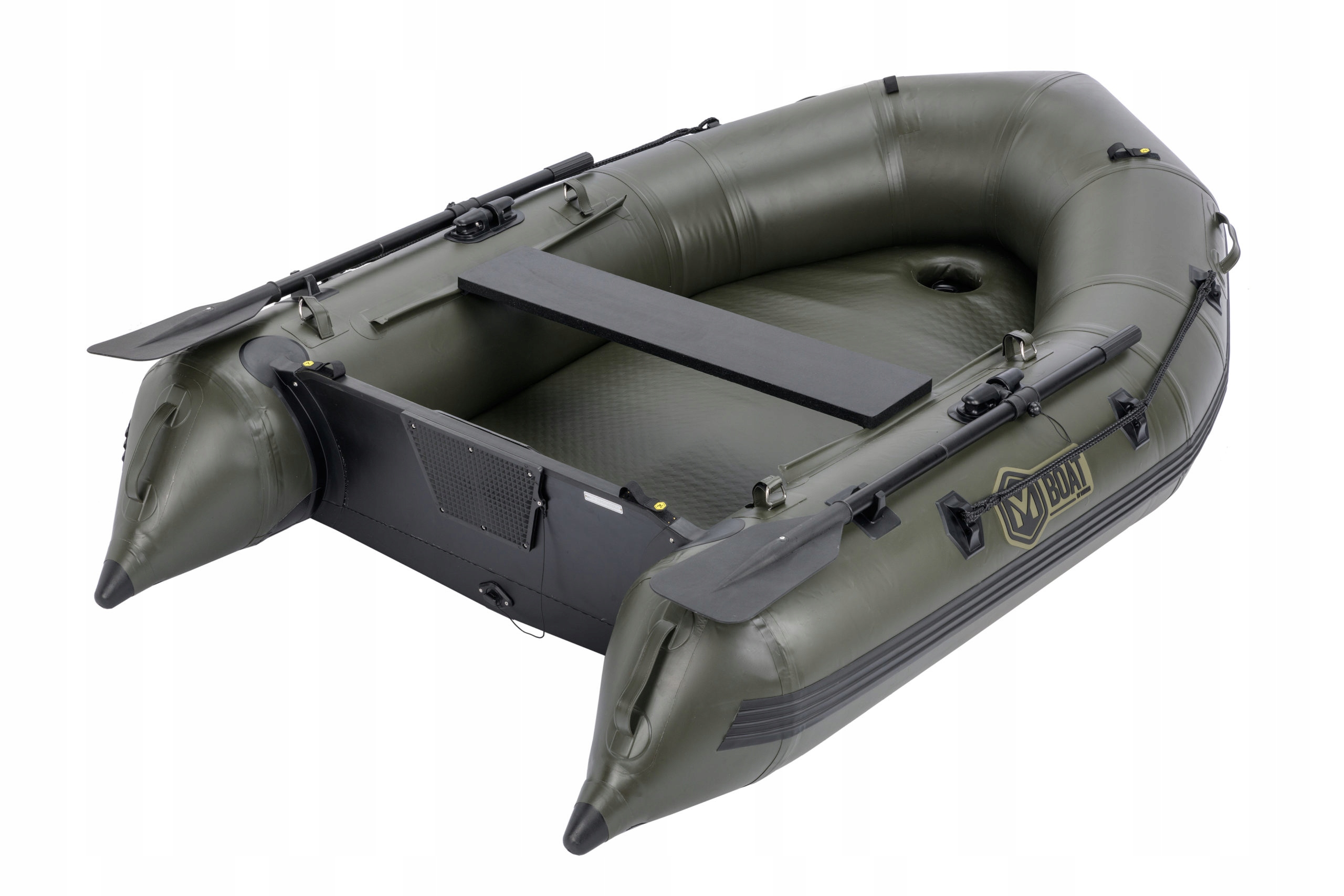 Друге покоління надувних човнів M-Boat Awb зберігає всі переваги та унікальні особливості цієї моделі, додаючи цілий ряд вдосконалень. Вищезгадана ширина та специфічна форма човна забезпечують надзвичайно великий внутрішній простір, який завжди значно більший, ніж стандартні човни однакової довжини на ринку. Це ще більше посилюється за допомогою специфічної конструкції задньої частини понтонів, що дозволяє переміщувати трансом якомога ближче до кінця понтонів, підтримуючи їх функцію у збереженні напрямку руху. Значно піднятий лук, поряд із спеціально сформованою передньою секцією, надійний надувний кіл, що працює по всій довжині підлоги, і спеціально розроблений транском, забезпечує чудові гідродинамічні властивості та стабільність спрямованості. На практиці це означає більш високу швидкість, легше поводження та менший споживання енергії під час живлення човна. Поінформований матеріал понтонів підвищує стійкість до проколів. Надувний підлога з подвійним шаром протектора майже незнищена, а його зелений колір гармонії добре з забарвленням човна та чорними веслами та іншими аксесуарами. Кожен човен обладнаний ремінцями на липучках на передній частині та на трансому. У середній секції є також важкий аксесуар.