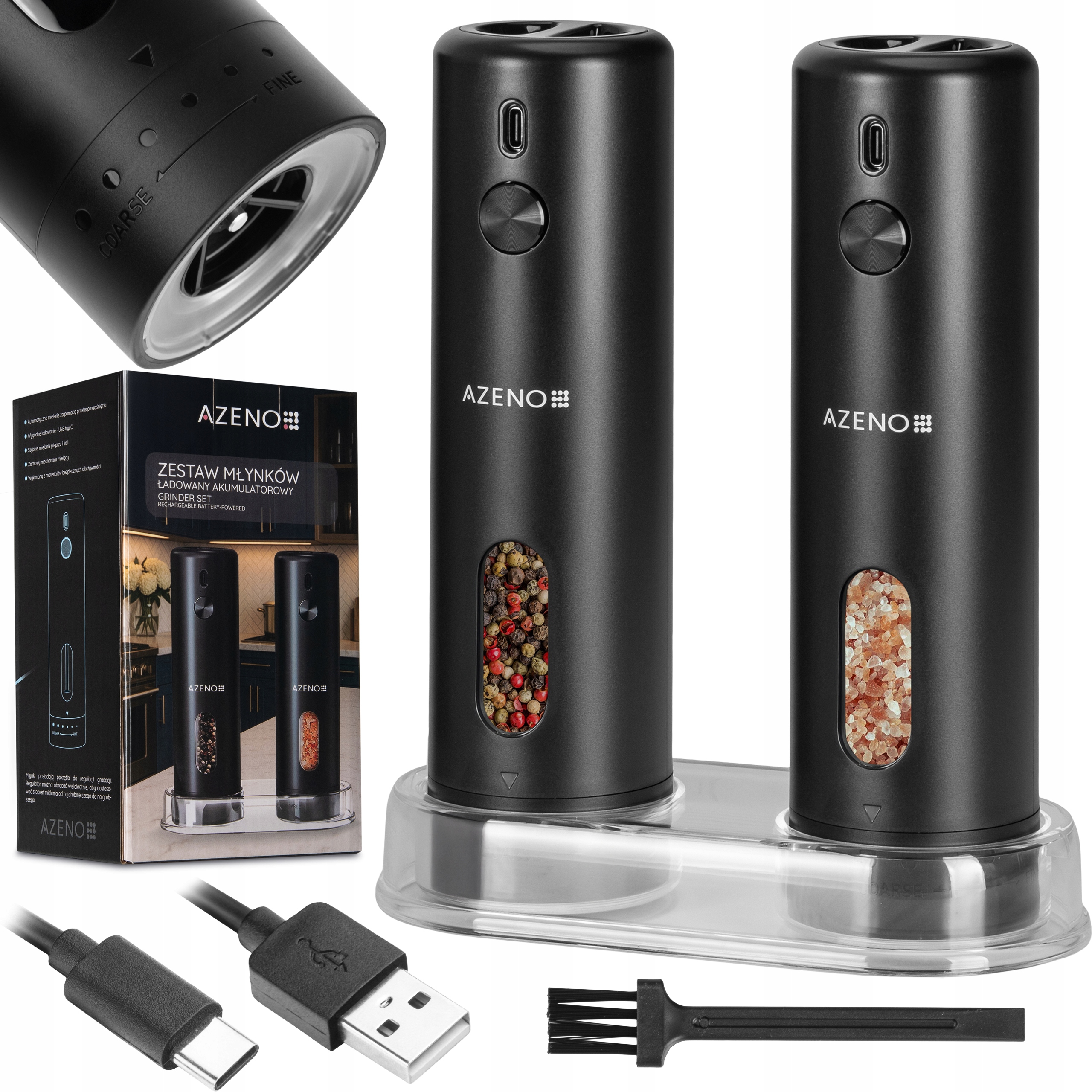 МЛИНИЦЯ ДЛЯ СІЛІ ТА ПЕРЦЮ ЕЛЕКТРИЧНА АКУМУЛЯТОРНА МЛИНИЦЯ USB-C З РЕГУЛЮВАННЯМ