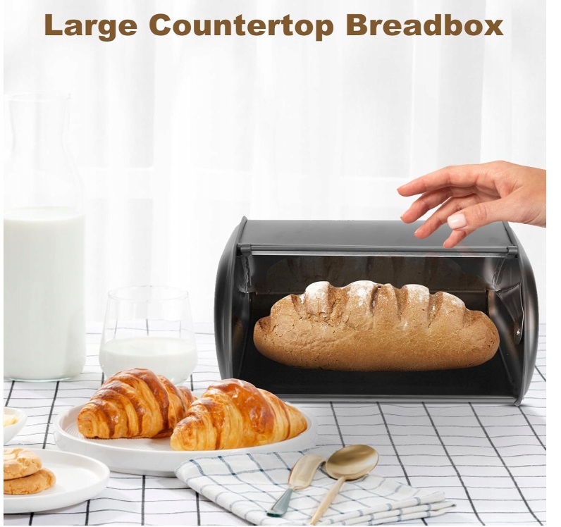 - Великий тримач для хліба на кухонній стільниці – цей елегантний тримач для хліба на кухонній стільниці ідеально підходить для багатьох великих буханців хліба та інших свіжоспечених продуктів, таких як печиво, бублики, кекси тощо; зберігайте випічку свіжою та чистою кухонних прилавків