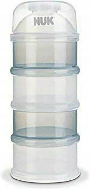 Порціонатор для сухого молока NUK. Оптимальне рішення повсякденних проблем матерів. Тому що сухе молоко завжди потрібно ретельно відміряти вказаною кількістю води, відповідно до рекомендацій виробника. На додаток до чотирьох відділень із практичною лійкою, дозатор сухого молока NUK містить воронку для заповнення в кришці, що забезпечує легке наповнення. Ковпачок для захисту та щільного транспортування порошку та знімний гвинтовий носик для наповнення. Ідеально підходить для подорожі з дитиною. Кожен контейнер може містити до 10 мірних ложок молока