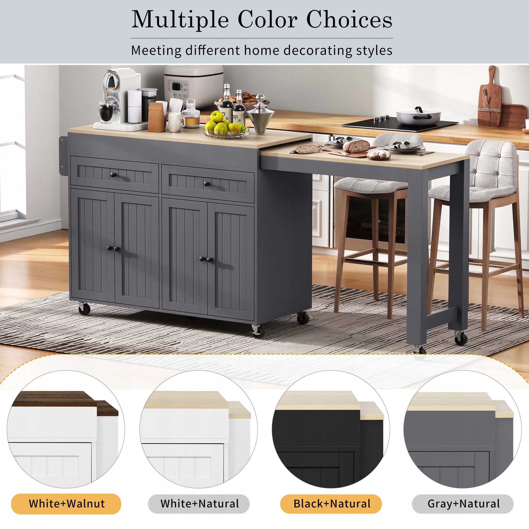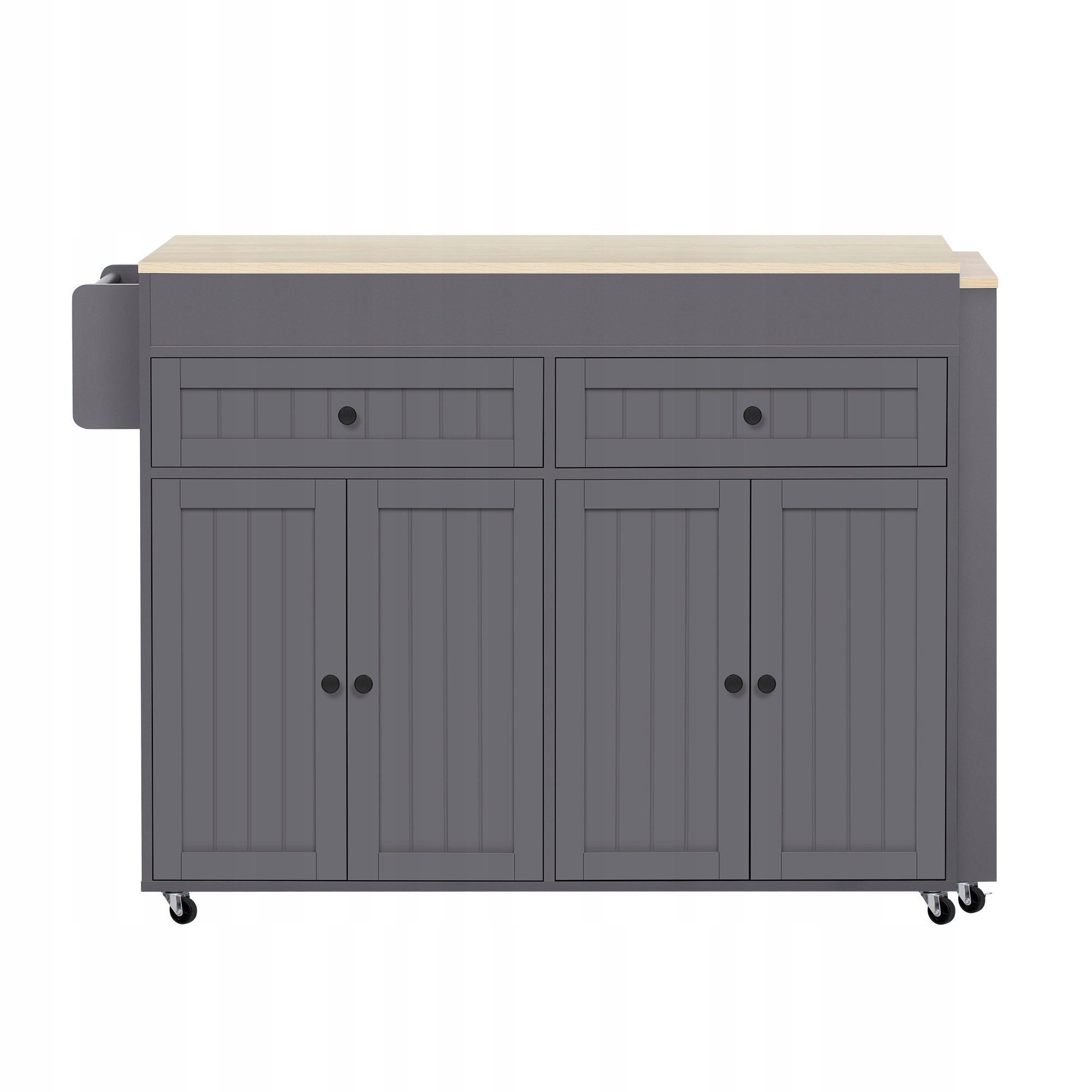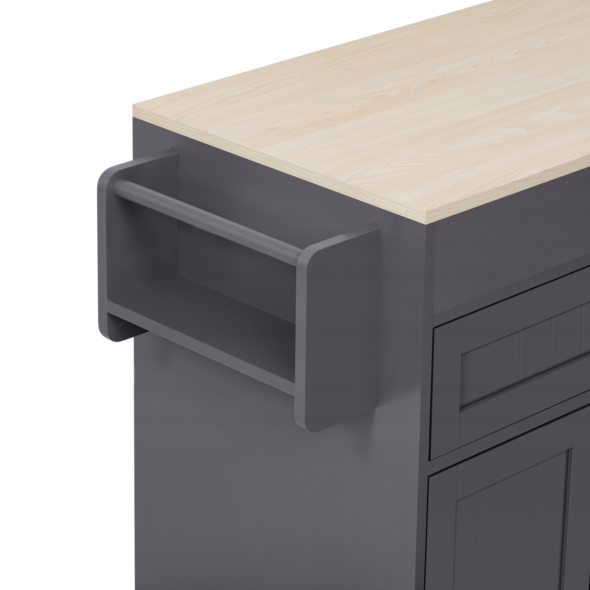 Мобільний кухонний острів на колесах, з їдальні та ящиками, сірий + натуральний