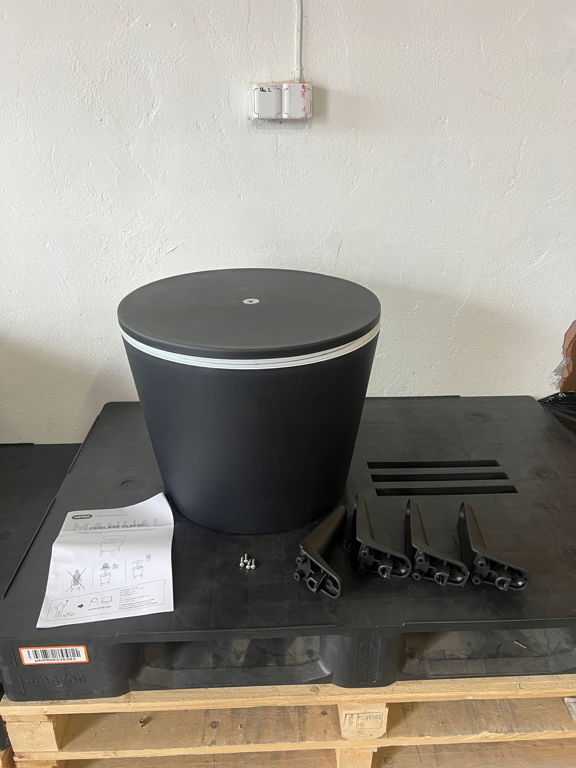 - точка кулі: завдяки розумній телескопічній системі його можна перетворити на стіл за допомогою ручки. Дуже універсальне використання. Конструкція з подвійними стінками зберігає напої холодними та завжди під рукою. У закритому стані він має висоту приблизно 57 см. Виготовлений з Стійкий до ультрафіолету, всепогодний, високоякісний поліпропілен (пластик)