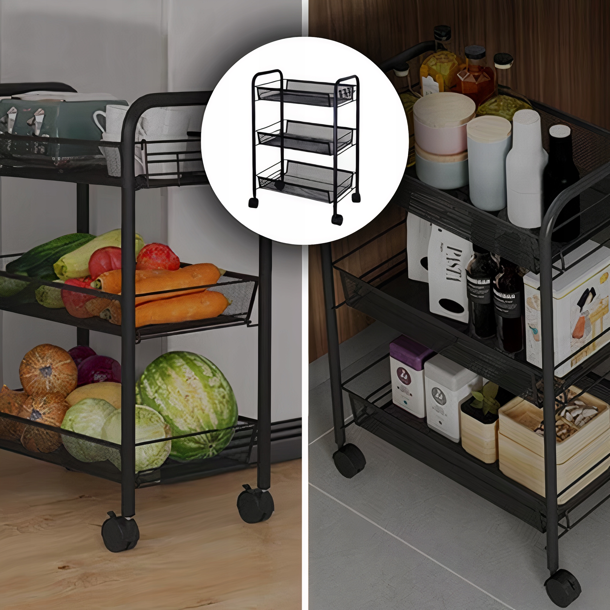 Ця чорна полиця на коліщатках був спеціально розроблений, щоб допомогти вам організувати навіть найвужчі простори та підтримувати порядок у різних кімнатах.