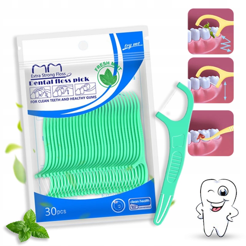 MOCNA I SKUTECZNA NICIO WYKALACZKI NIĆ DENTYSTYCZNA DO ZĘBÓW MIĘTOWA 30 SZT