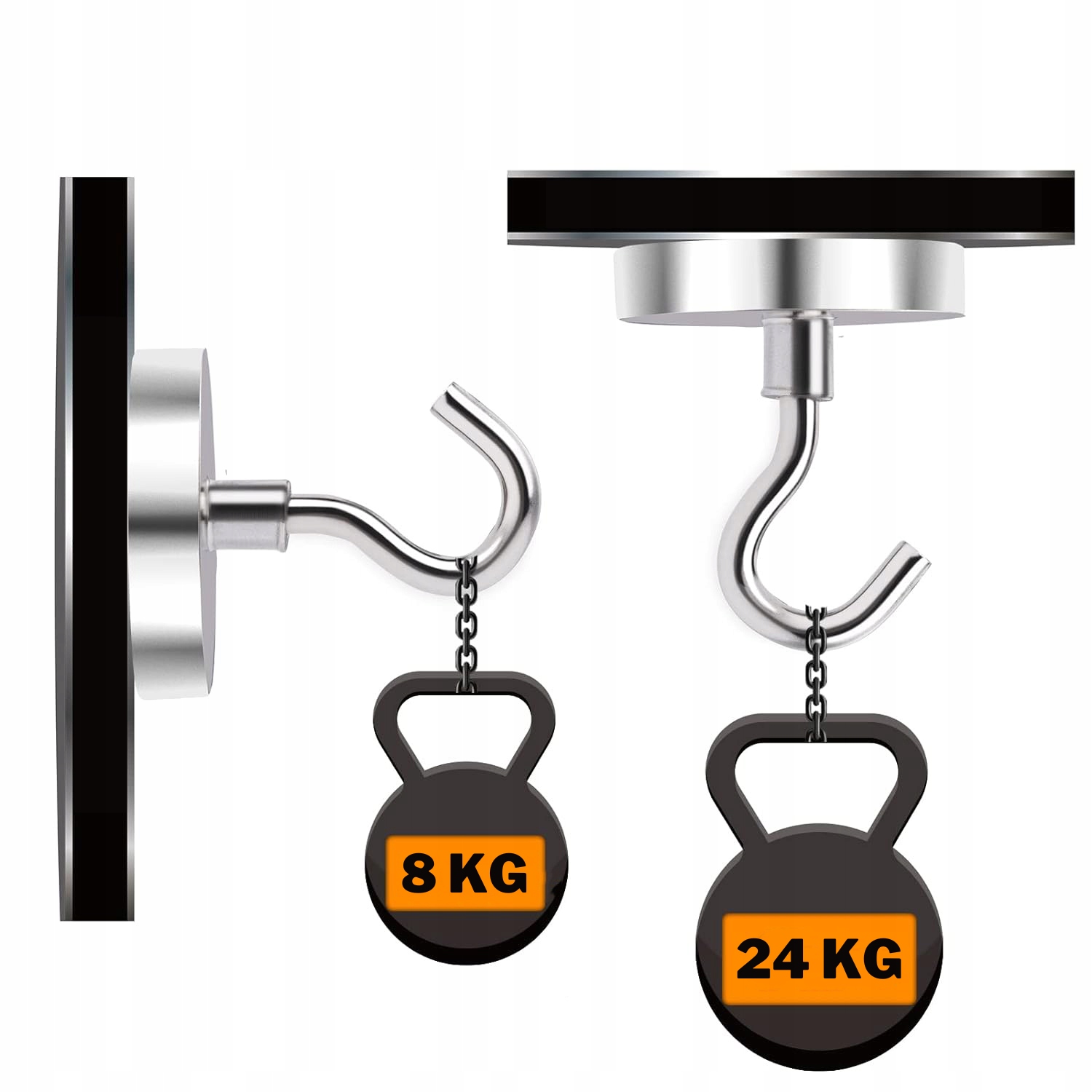Mocny magnes neodymowy z haczykiem hakiem uchwyt XXL 32 mm x 45 mm 24 kg