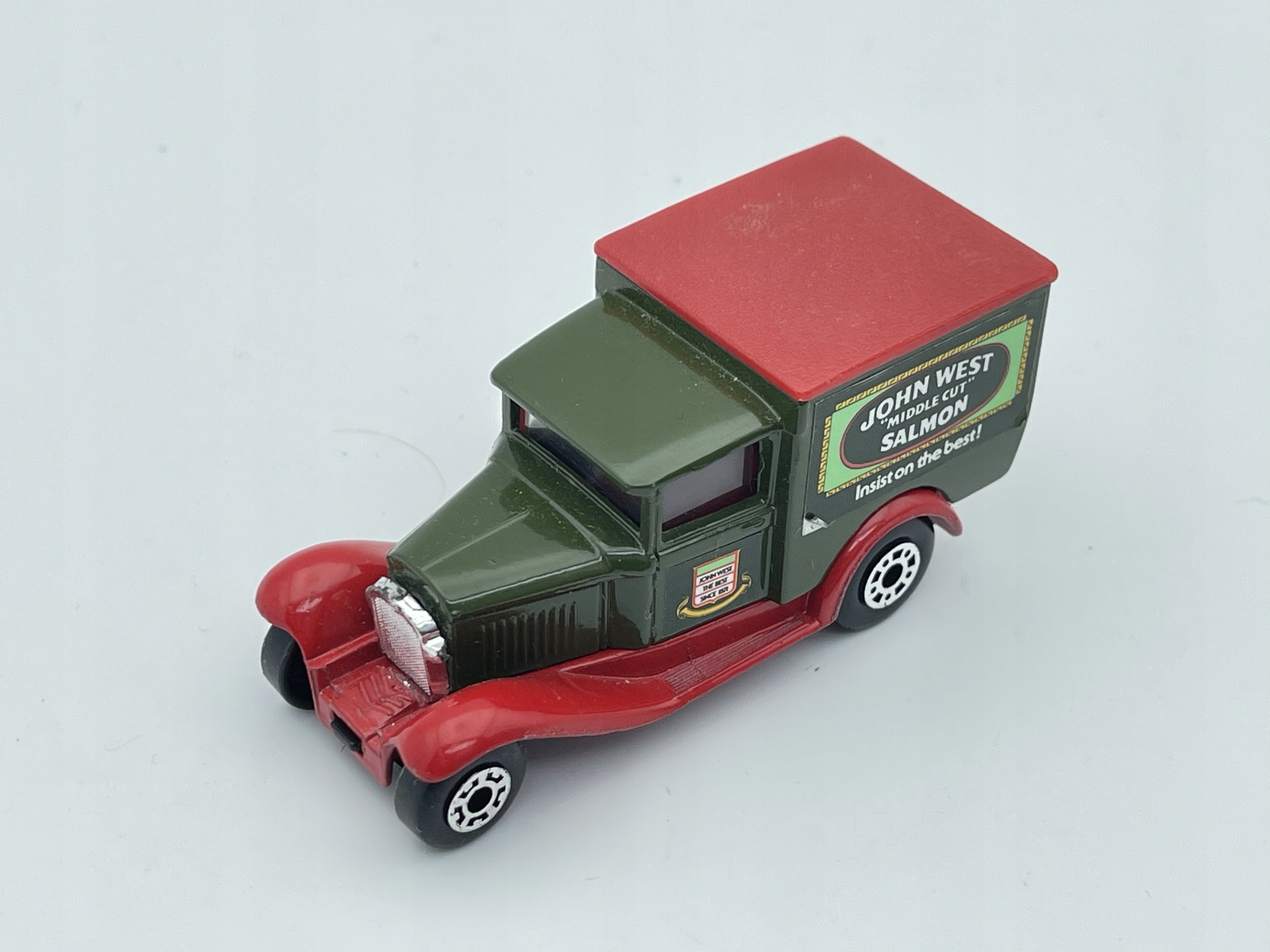Підвіска Matchbox Superfast Model A Ford із вінтажним стилем і рекламою «John West Salmon».