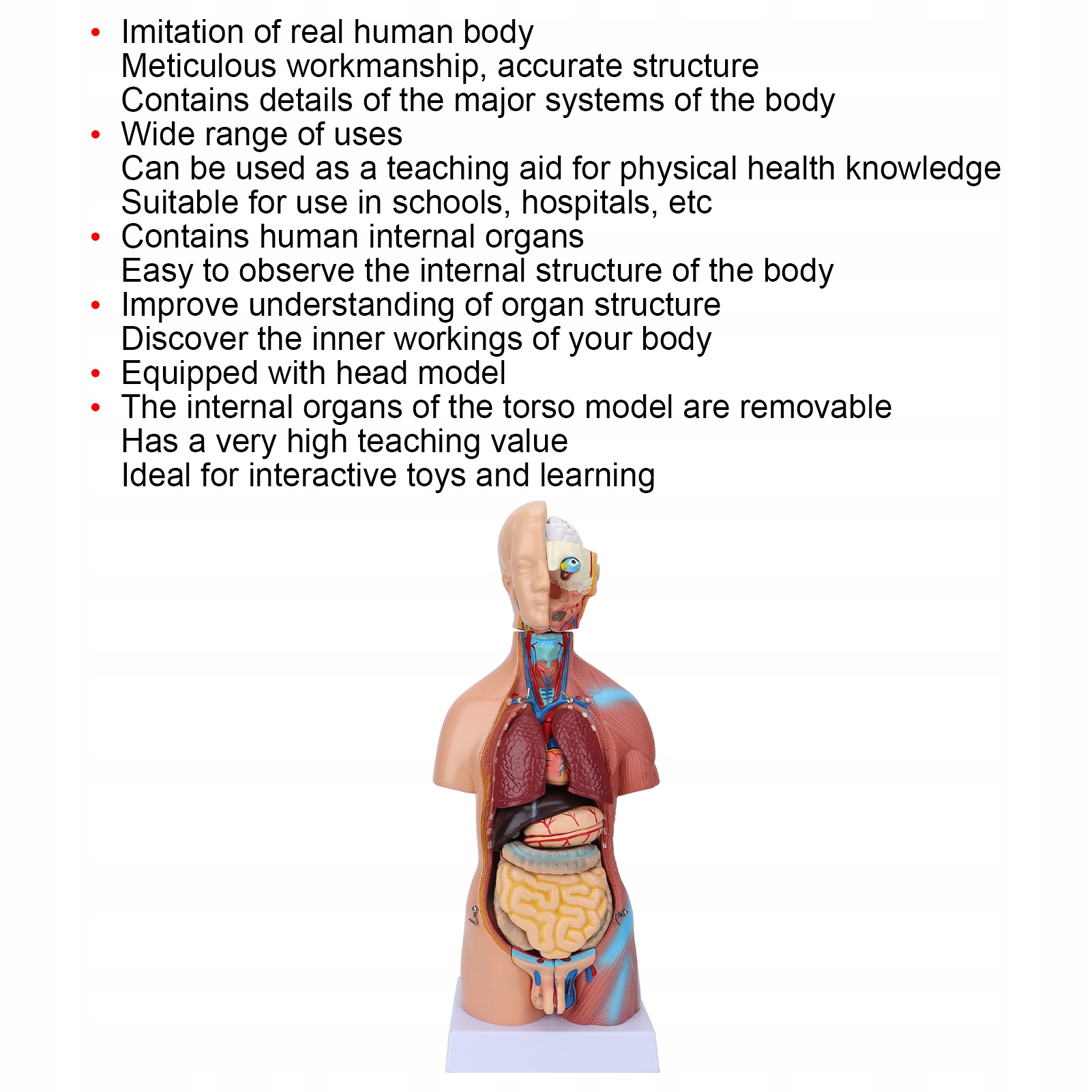 5. [Розбірна] професійна навчальна модель, виготовлена з екологічно чистого матеріалу ПВХ, оснащена моделлю голови, а внутрішні органи моделі тулуба роз'ємні, зручні у використанні.