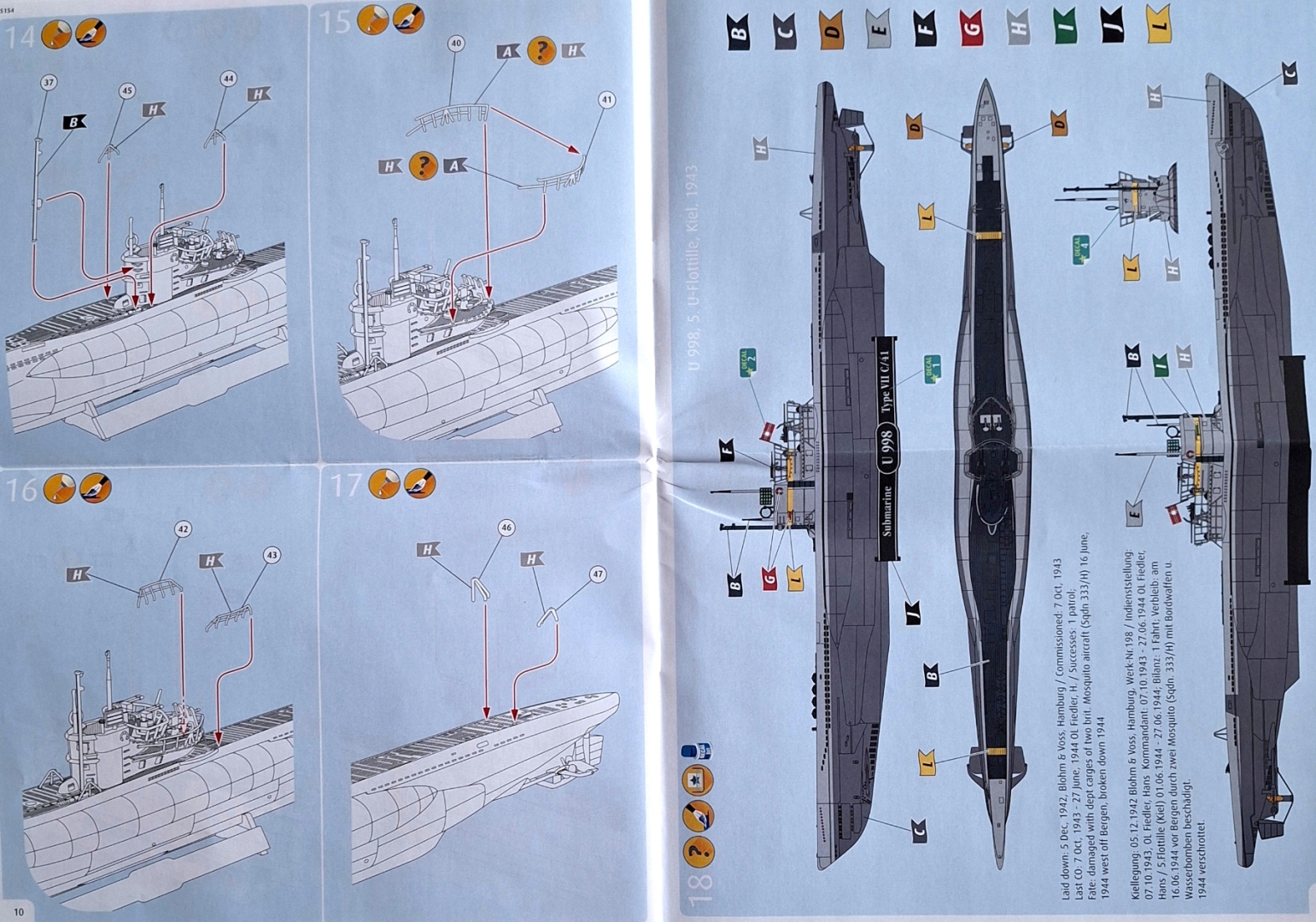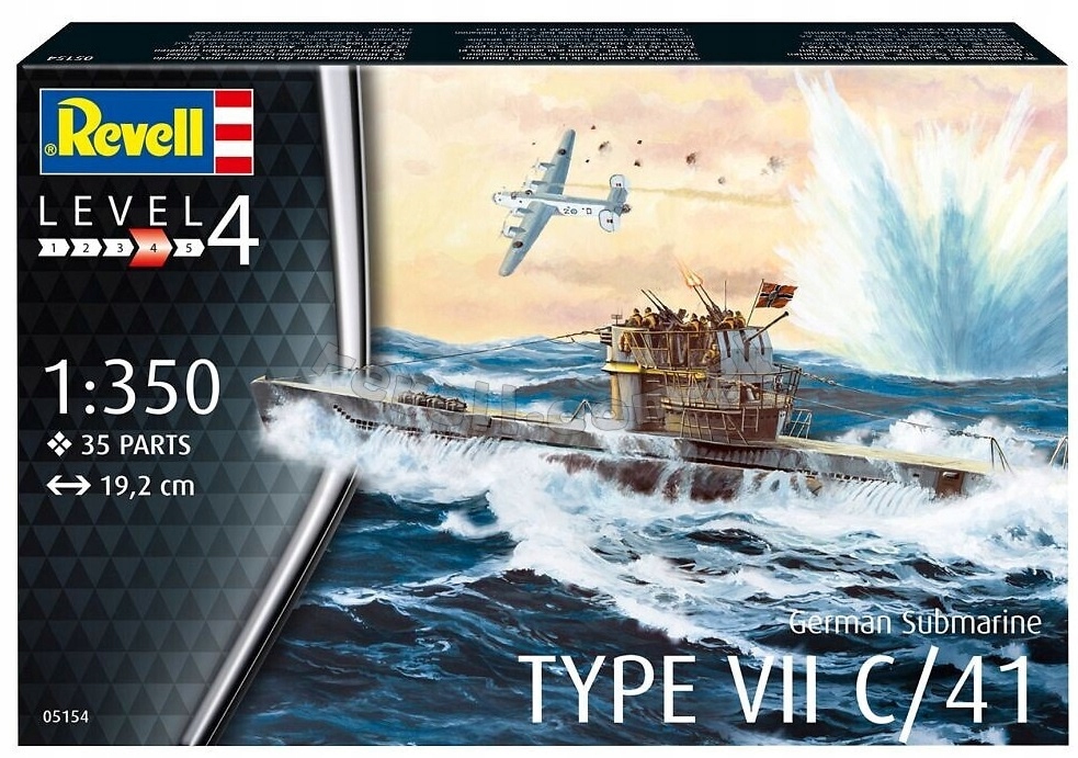 Набір включає пластикову модель для приклеювання німецької типу VII C/41 від шкали Другої світової війни