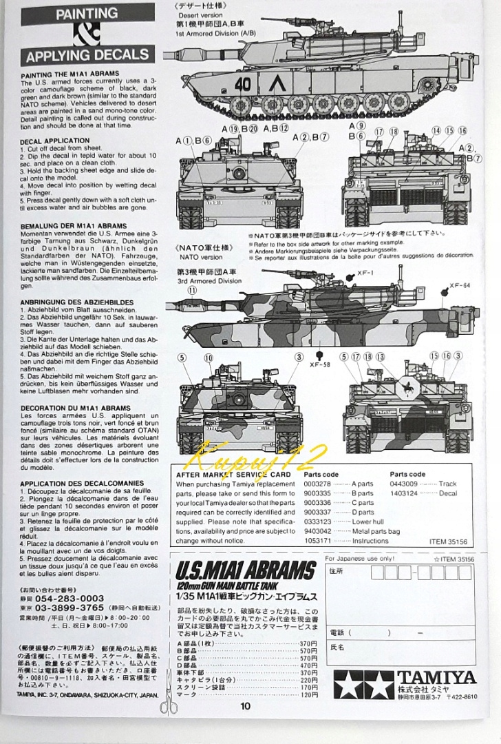 Модель "Тамія" в масштабі 1:35, танк M1A1 Abrams_Україна + фарби....