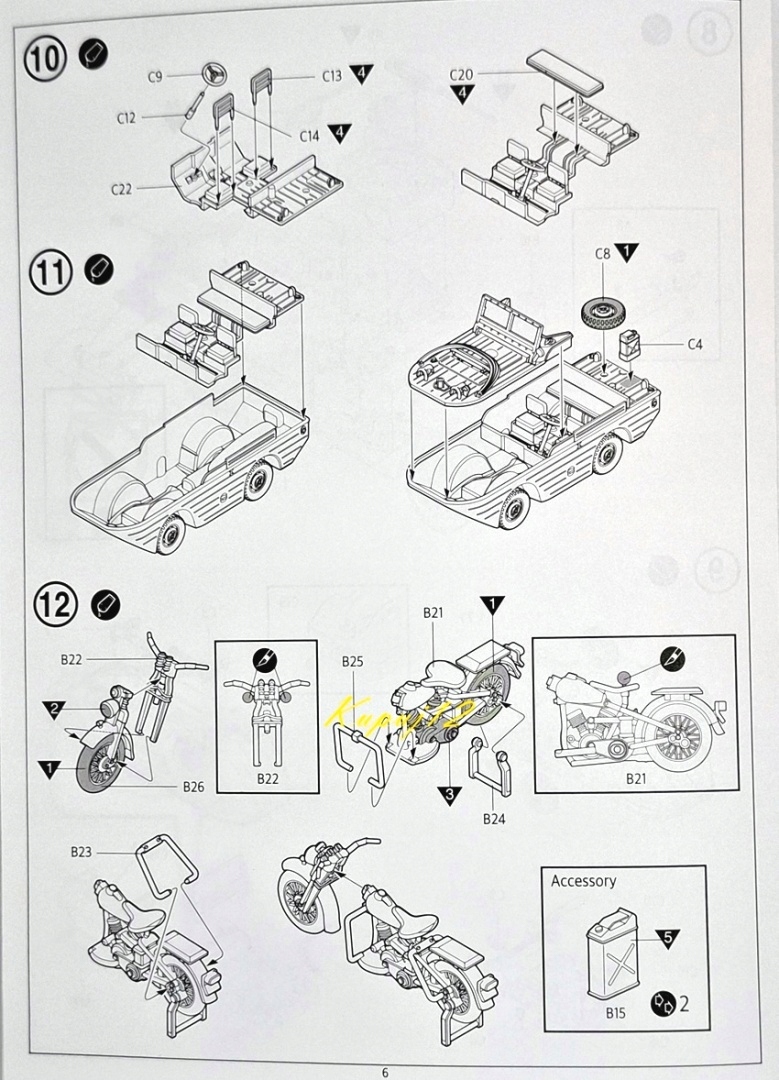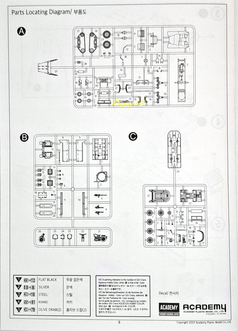 Пластикові елементи необхідно вирізати з каркасів, підігнати та склеїти відповідно до інструкції зі складання, що додається.
