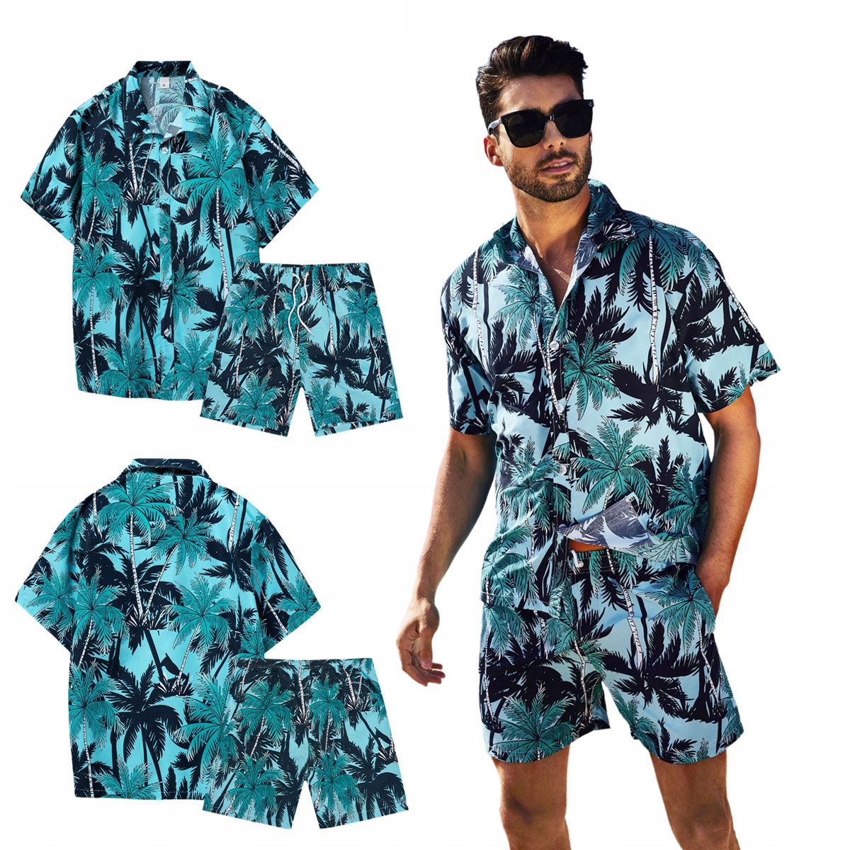 МОДНА ЧОЛОВІЧА СОРОЧКА ТА ПЛЯЖНІ ШОРТИ ГАВАЙСЬКИЙ СВЯТКОВИЙ КОМПЛЕКТ З КОРОТКИМ РУКАВОМ