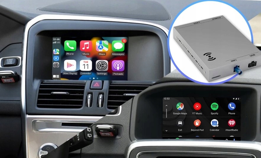 Сучасний модуль для інтеграції бездротових Apple CarPlay і Android Auto із заводською мультимедійною системою вашого Volvo! Підтримує моделі з блоком (наприклад, XC60, S60, V40 тощо – перевірте сумісність перед покупкою).