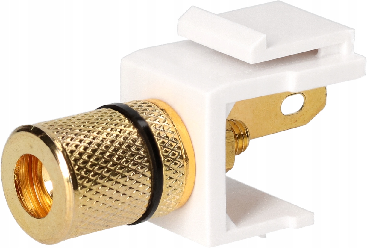 Модуль Keystone із роз’ємом типу «банан», який використовується в установках гучномовців. Роз'єм позолочений, що робить його стійким до окислення і забезпечує хороший контакт з підключеним штекером або кабелем. Конструкція роз’єму дозволяє підключати кабелі гучномовців різними способами: