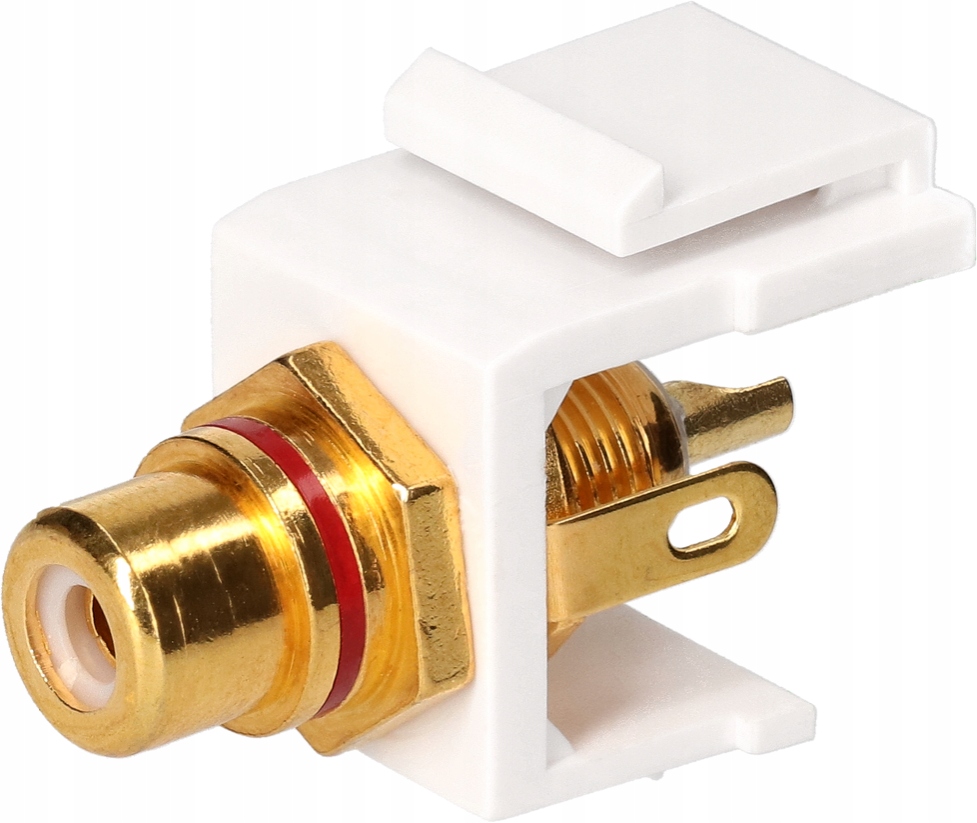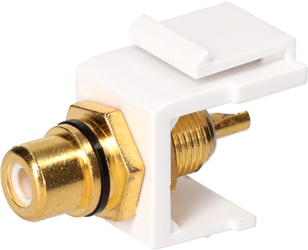 Модуль Keystone із роз’ємом RCA/CINCH, який використовується в аудіо/відео інсталяціях. Роз'єм позолочений, що робить його стійким до окислення та забезпечує хороший контакт підключеного штекера або кабелю, що забезпечує високу якість підключення та передачу як аналогового (композитного, компонентного, стереоаудіо), так і цифрового (S/PDIF) сигналу.