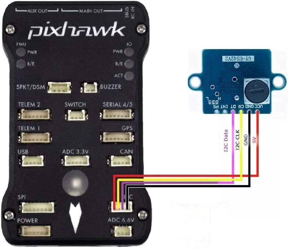- Режим IIC може бути підключений безпосередньо до APM, Pixhawk та іншого управління польотом.