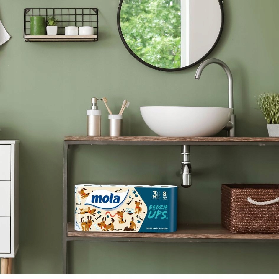причал туалетного паперу буде розрізняти не лише відмінну якість, але й оригінальний дизайн. Барвисті відбитки вишуканих собак додають чарівності та свіжості будь -якому інтер’єру, створюючи приємну атмосферу у ванній кімнаті.