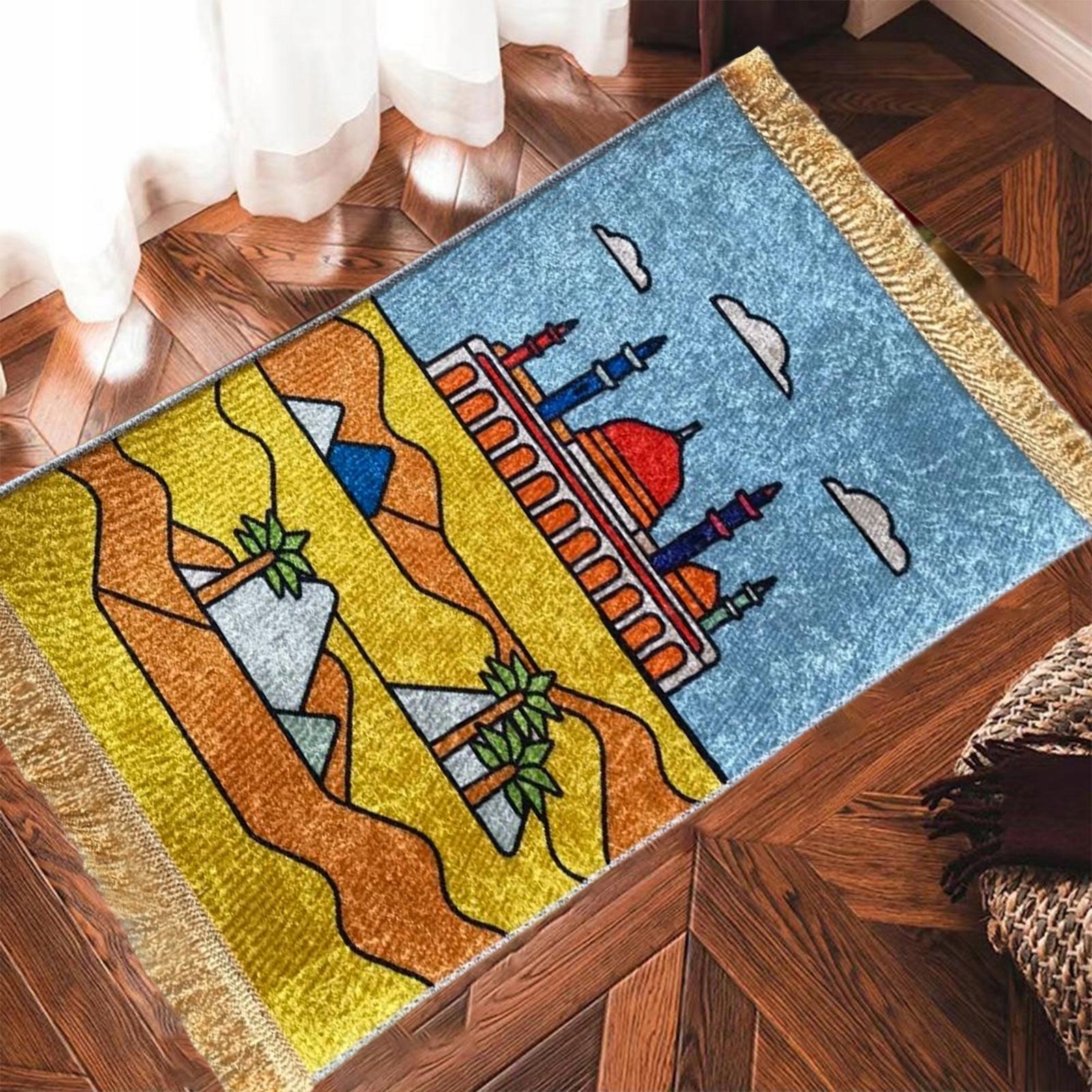 МУЛЬТЯЖНИЙ ДИЗАЙН: мультяшний молитовний килимок із китицею, простий і елегантний. Зімітуйте візерунок мечеті, щоб діти відчували себе ближче до молитви, ідеально підходить для дітей, які люблять наслідувати своїх батьків під час молитви.