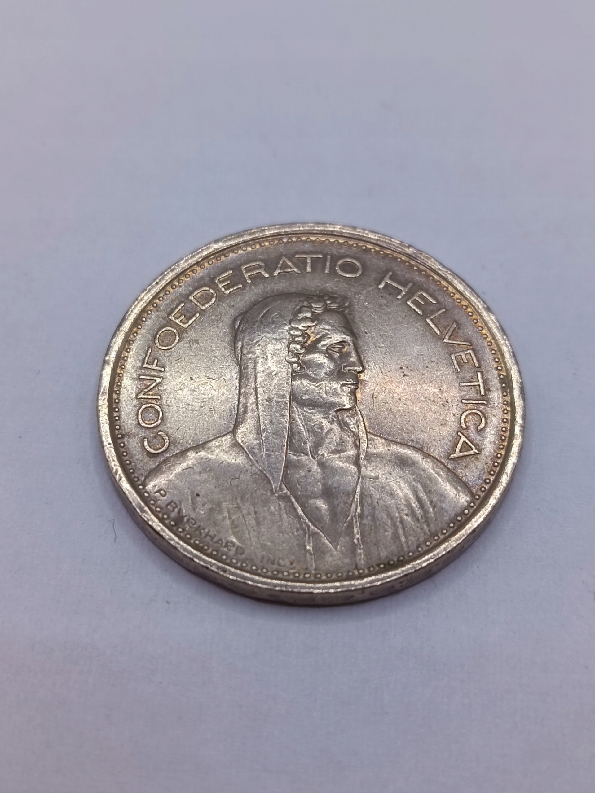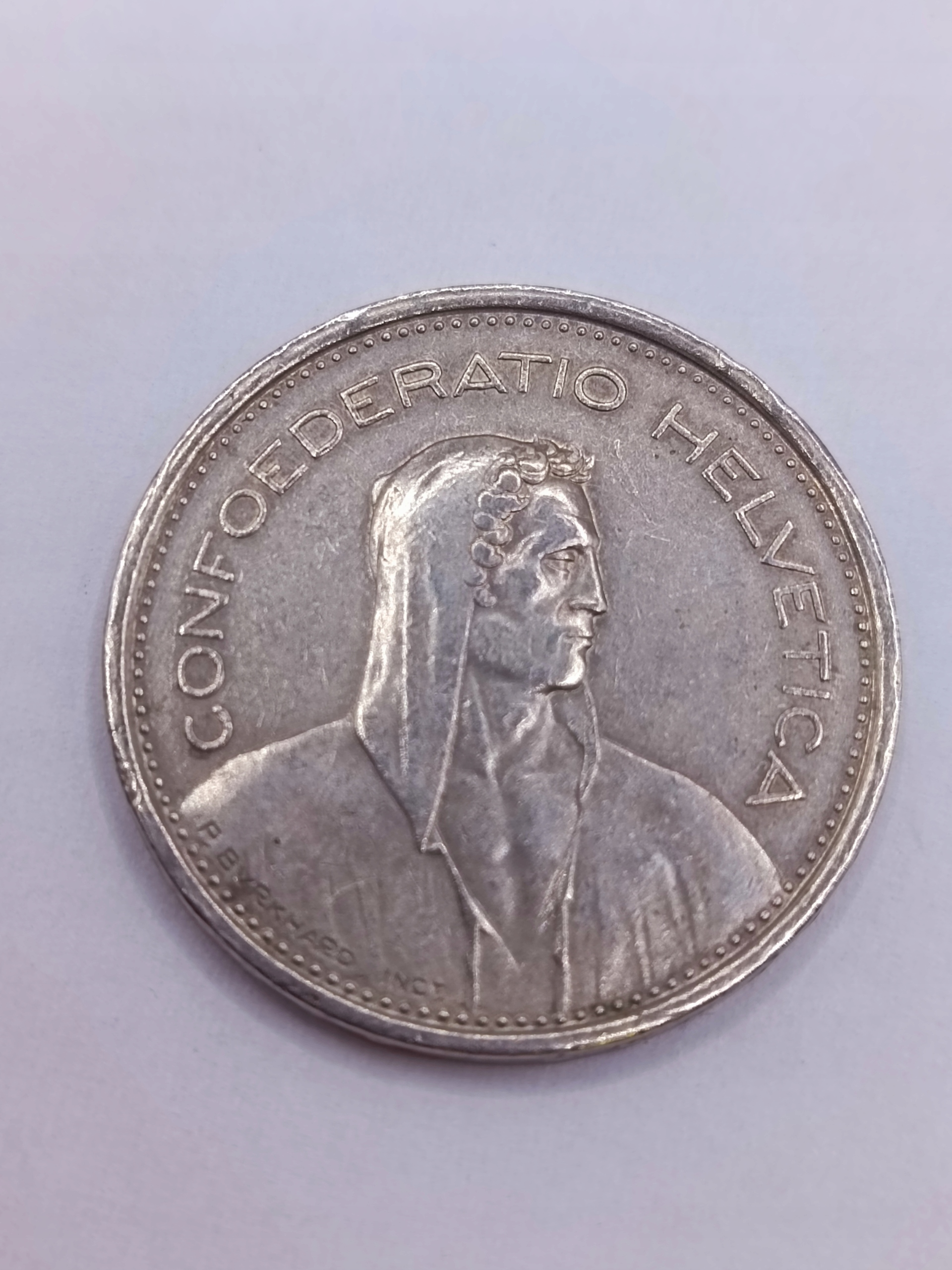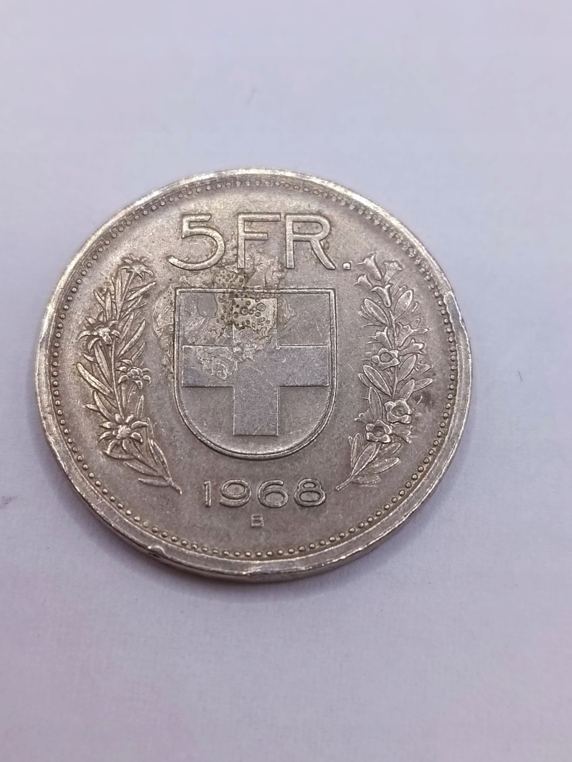 МОНЕТА П'ЯТЬ ФРАНКІВ, ШВЕЙЦАРІЯ, 1968 РОКУ.