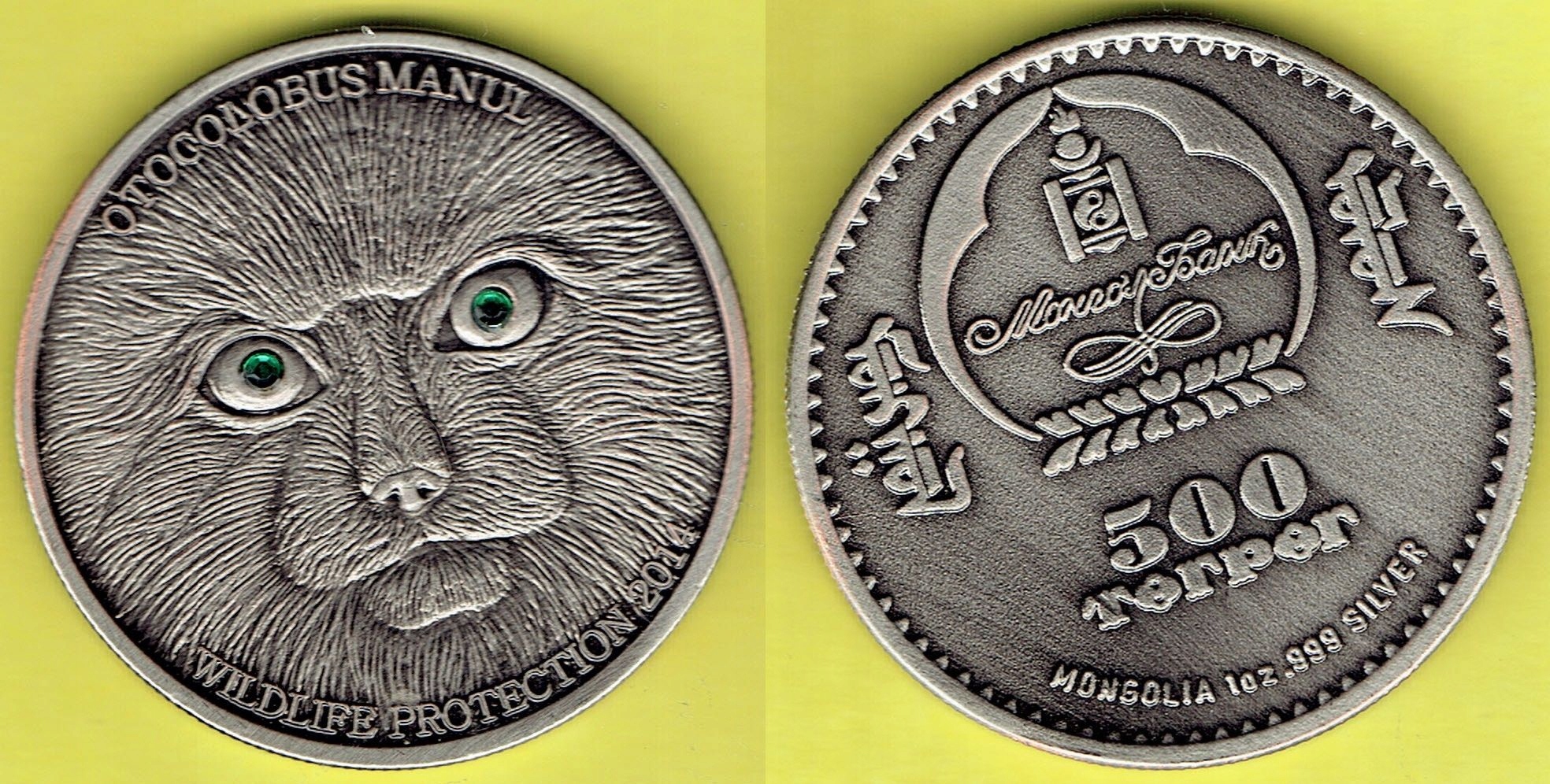 MONGOLIA 500 TUGRIKÓW 2014 r. MANUL STEPOWY KOPIA