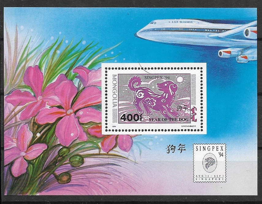 Mongolia xx W53 fauna psy koty MNH VF samolot