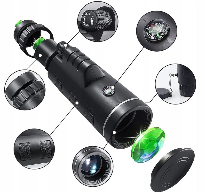 - Монокулярний генетичний оптичний 40x60hd оснащений висококласним призмою BAK-7 та багатошаровими покриттями лінз, які допомагають отримати чітке та чітке зображення. Li>