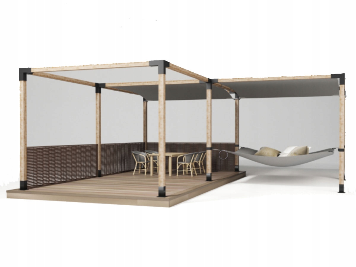 QUATRO - кріпильний елемент, що дозволяє з'єднати балку в трьох площинах з розширенням. З’єднувачі використовуються для збільшення конструкції альтанки.