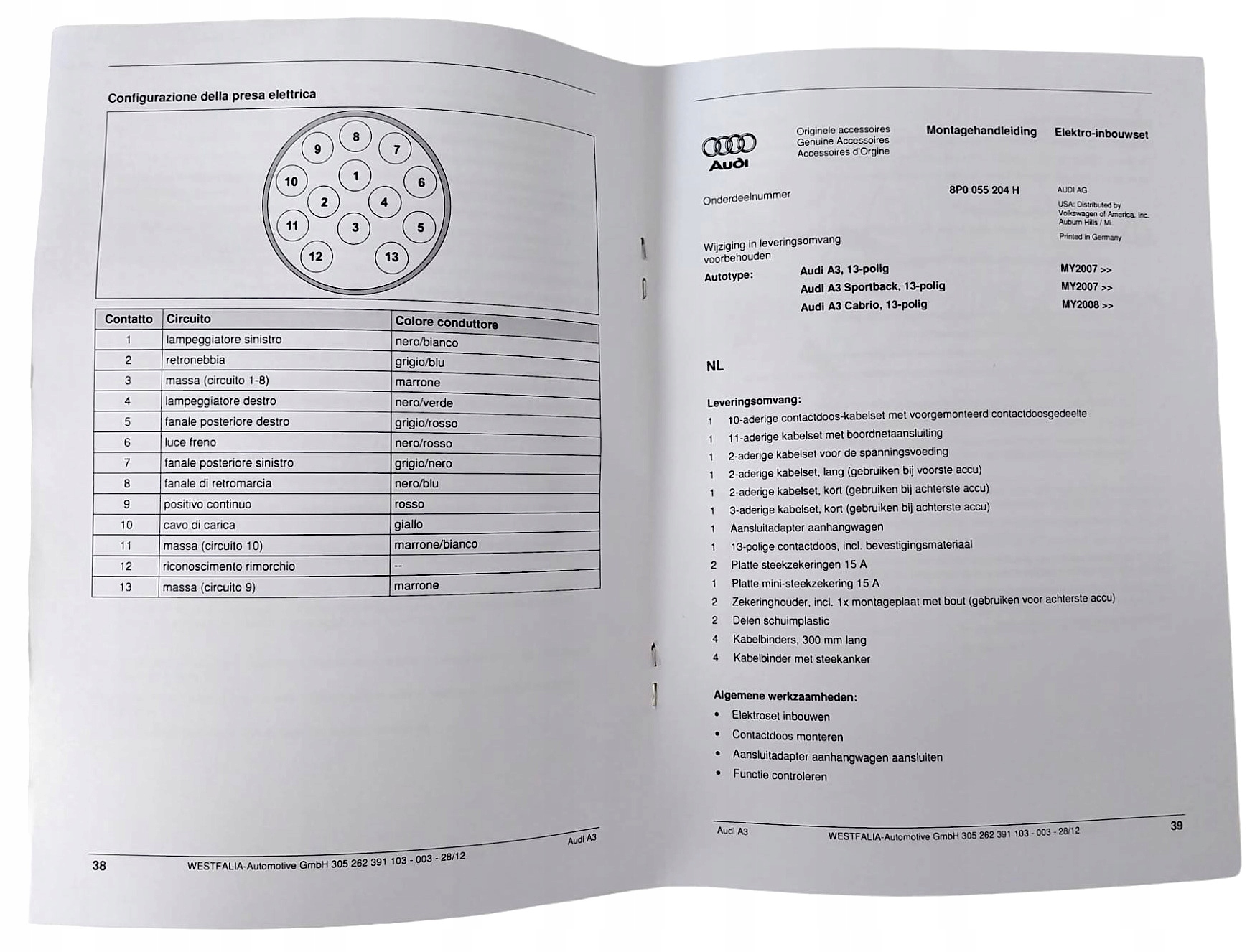 МОНТАЖНИЙ КОМПЛЕКТ ДЛЯ БУКСИРУВАННЯ МОДУЛЯ ЖГУТУ ПРОВОДІВ 8P0055204H AUDI A3 8P 03-13