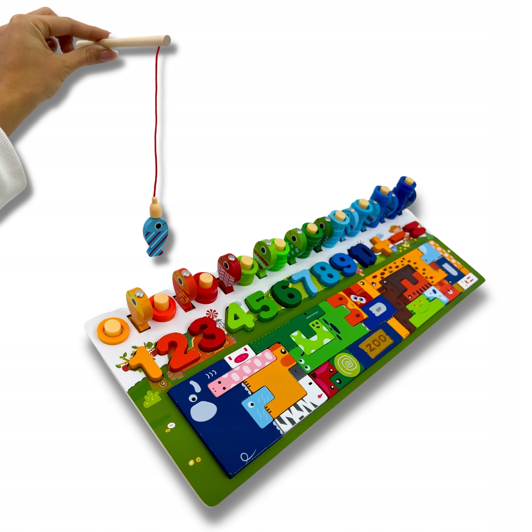 Наш набір був створений для розвитку дитини. Наша навчальна гра дозволить вашій дитині отримати багато різних навичок найприємнішим способом ! Граючи на дошці, ваша дитина отримає можливість розпізнавати та відповідати кольорам та формі. Дошка оснащена abacus , риболовлями риби , що покращує координацію зорового руху та зоопарк для тварин, що дозволяє грати в tetris .