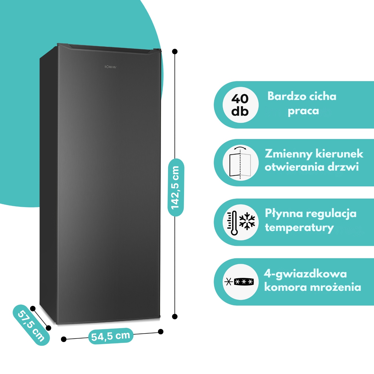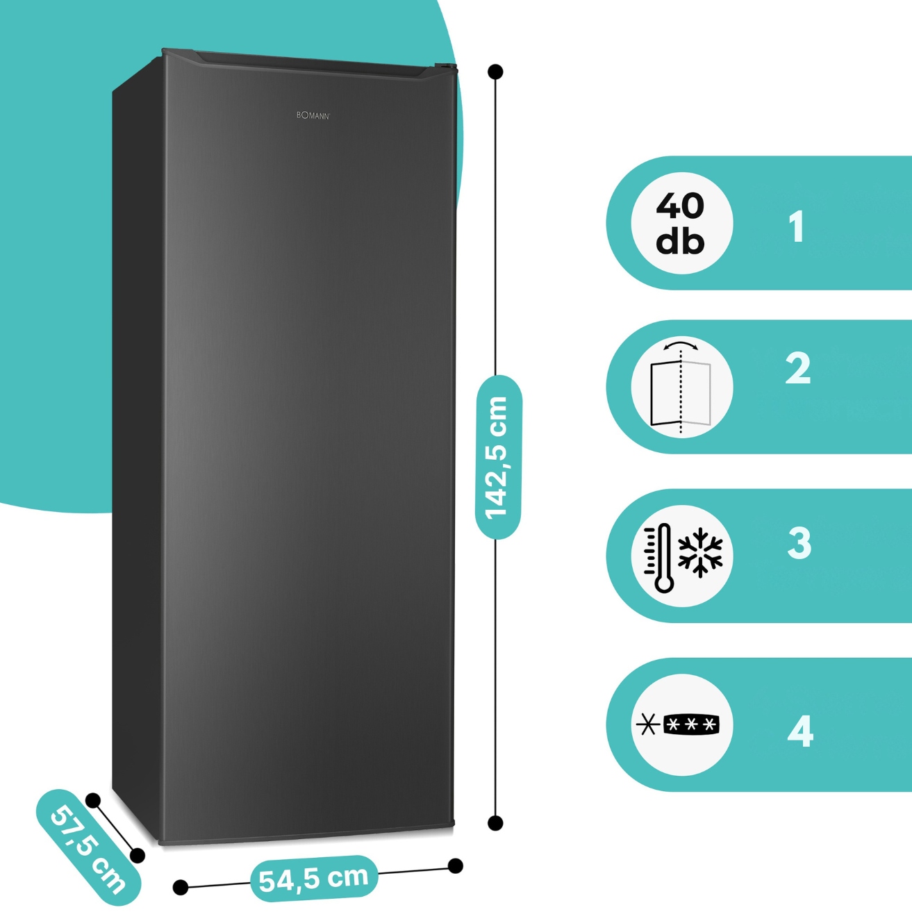 МОРОЗИЛЬНА КАМЕРА BOMANN GS 7364 DARK INOX 168 Л, ЕНЕРГОЗБЕРЕЖЕННЯ, ТИХА