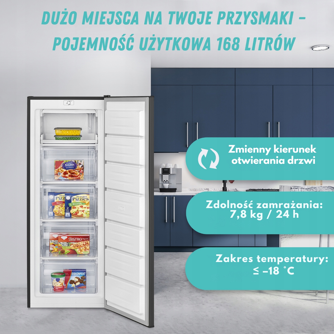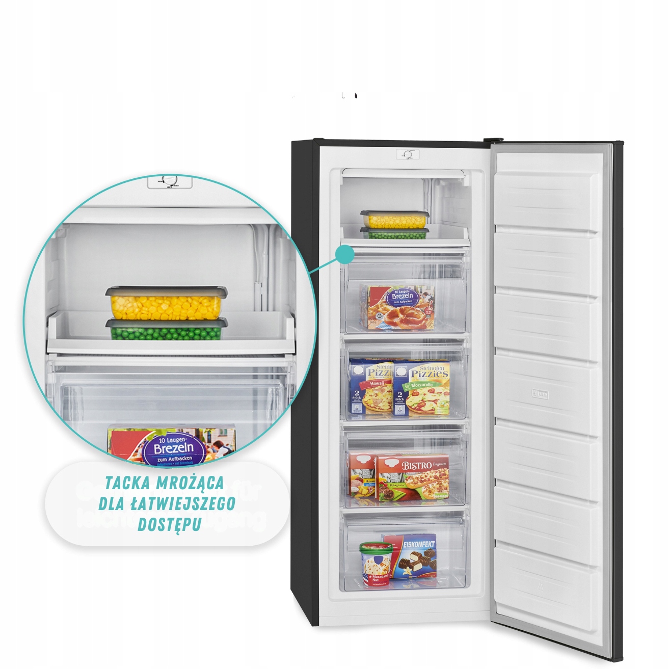Тиха та енергозберігаюча морозильна камера об’ємом 168 літрів, створена для комфортного використання. Завдяки чотирьом висувним ящикам, висувному лотку та простій системі контролю температури пристрій пропонує повну функціональність у компактному вигляді. Ідеальний вибір для людей, які цінують практичність, надійність і низькі експлуатаційні витрати.