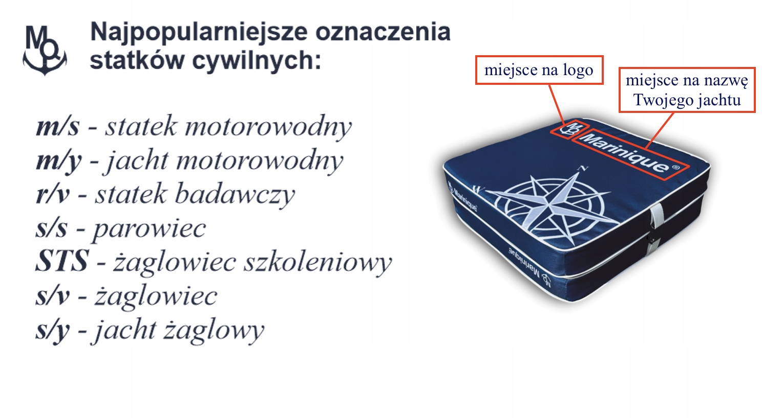 Просматривая «Морская подушка с именем вашей яхты», вы можете быть уверены, что данный товар из каталога «[rubrica_name]» будет доставлен из Польши и проверен на целостность. В цене товара, указанной на сайте, учтена доставка из Польши. Внимание!!! Товары для Евросоюза, согласно законодательству стран Евросоюза, могут отличаться упаковкой или наполнением.