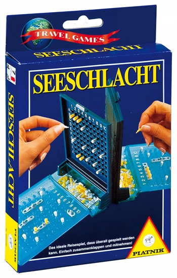 Подорожня версія гри "Морський бій". Кожен гравець відкриває похилену дошку, причому чорна частина стоїть перпендикулярно, щоб заважати опонентові бачити дошку, і навпаки. Гравець вільно розміщує 5 кораблів на нижній прозорій частині. Їх можна розташувати горизонтально і перпендикулярно. Обидва гравці мають однакову кількість кораблів однакового розміру. Починається битва. Під час стрільби гравець-початківець вводить букву від A до J і цифру від 1 до 10. Він посилає свій удар у відповідні координати суперника. Противник повинен доповісти «шляхом» (ракета впала поза межами кораблів) або «втручанням» (ракета влучила в корабель). Якщо один з гравців по черзі влучає в усі частини одного з кораблів супротивника, його капітан зобов'язаний повідомити, що «корабель затонув». Піднята чорна дошка символізує море супротивника, у разі попадання гравець, що стріляє, вставляє жовтий кілочок у перпендикулярну дошку, щоб стежити за станом флоту супротивника. Білі кеглі служать допоміжними сигналами, що вказують на місця, де ми пропустили суперника. У перестрілці обидва гравці грають по черзі. Кінець гри: якщо всі кораблі одного гравця вражені, їхній «капітан» програє. Підходить для дітей віком від 7 років.