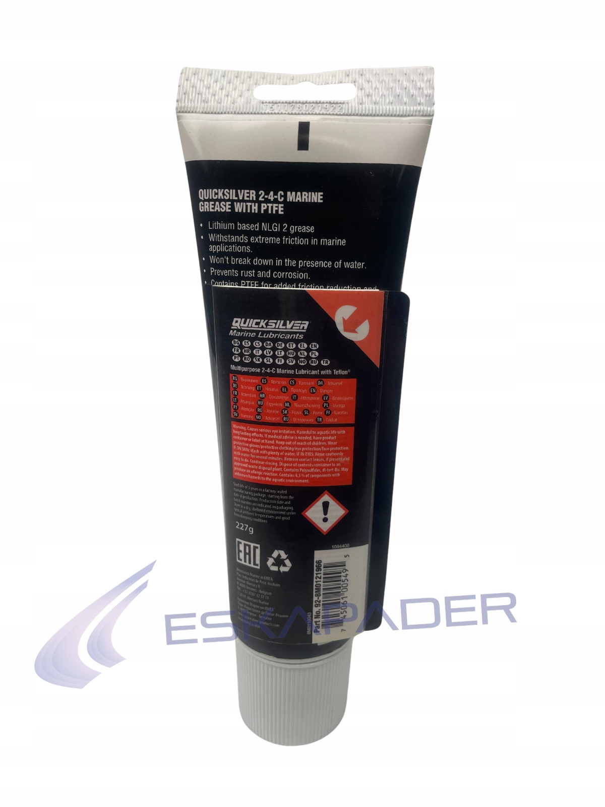 Quicksilver 2-4-C Морська мастила -це високоякісна мастило, що містить тефлон, що ідеально справляється з різними програмами. Окрім забезпечення виняткової стійкості до екстремального тертя, ця жир забезпечує додатковий захист від вологи, що запобігає корозії. Його можна використовувати як у внутрішніх, так і у морських умовах.