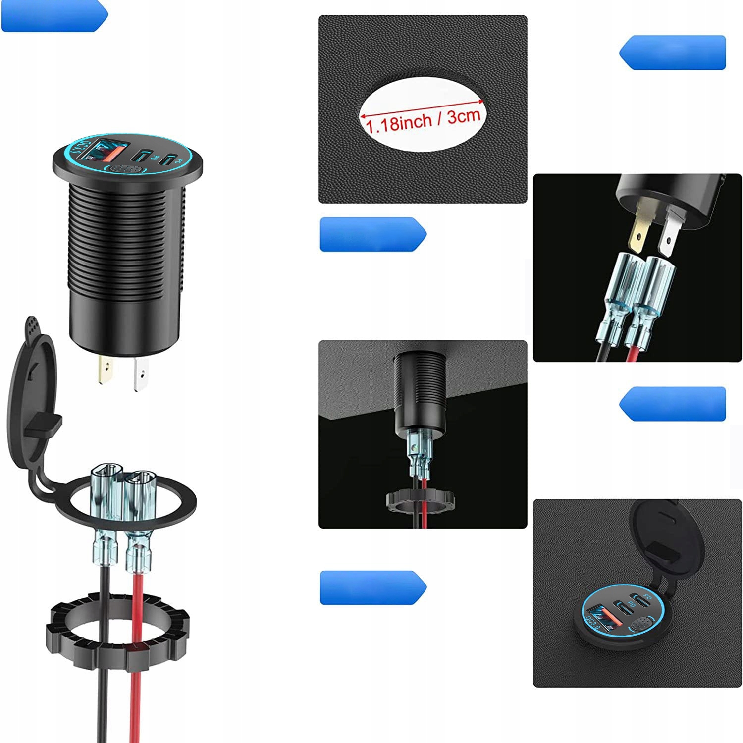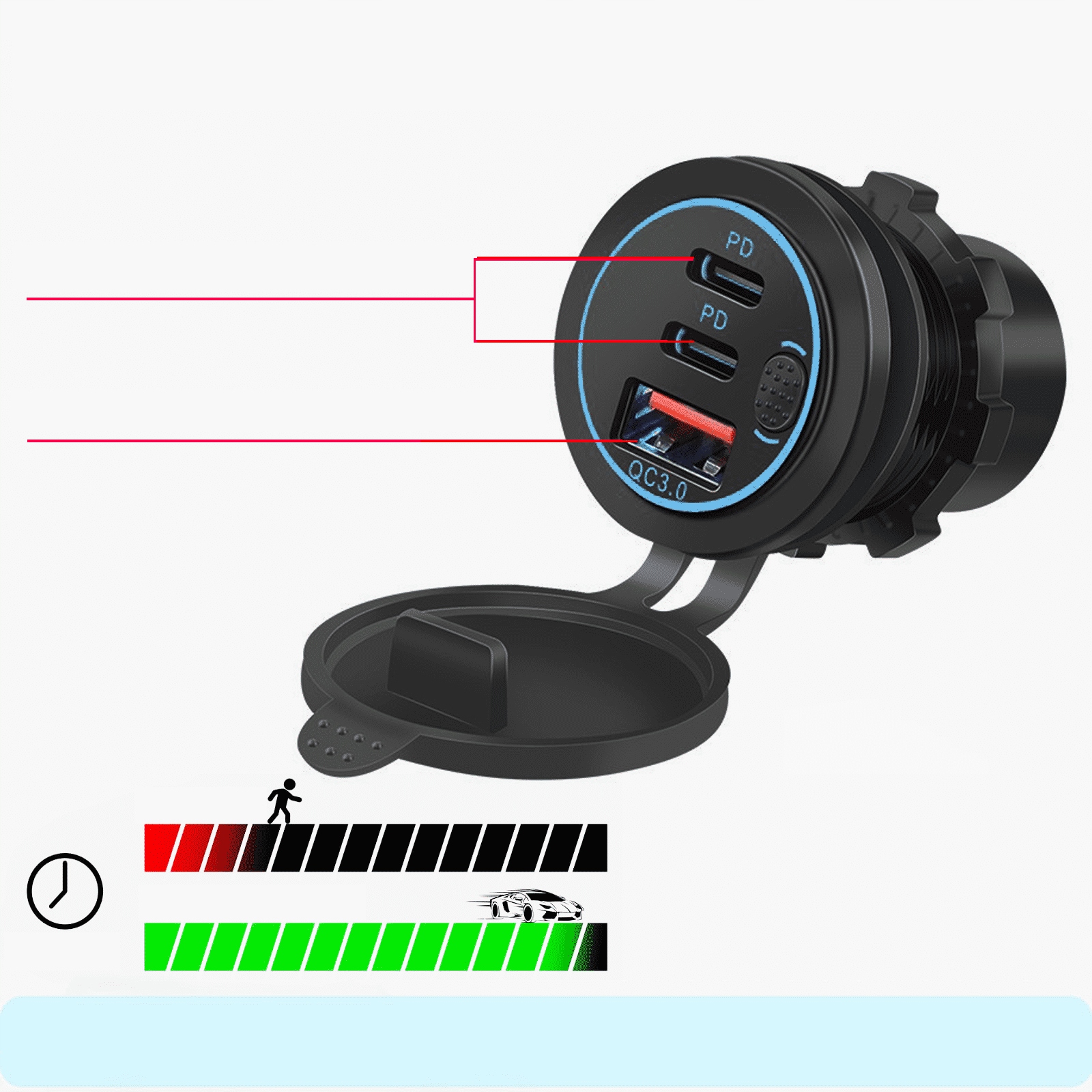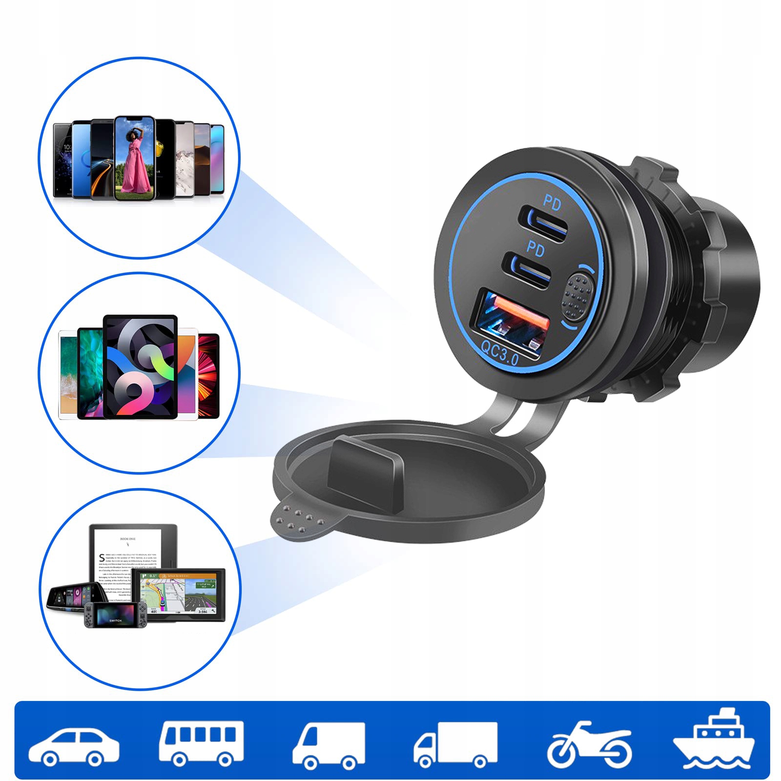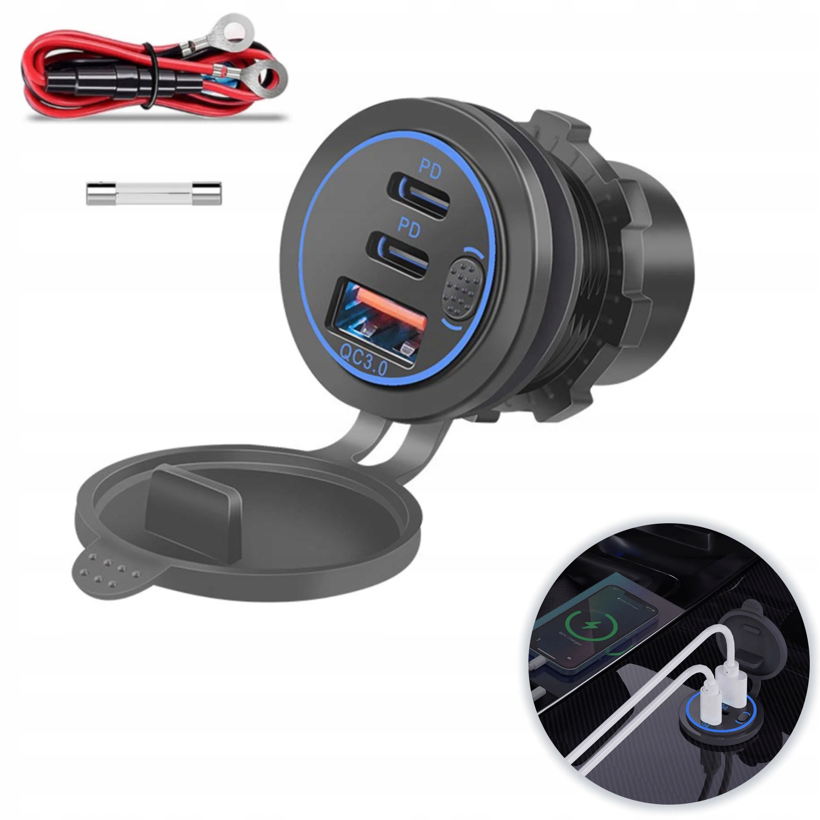 Мотоцикл USB TYP-C PD + USB QC 3.0 12V розетка для автомобіля, CAR