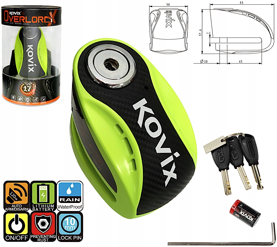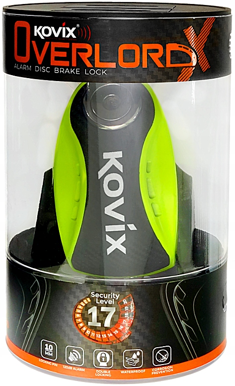 Протягом десятиліття Kovix виробляє та переговорні інтелектуальні системи безпеки для всіх типів скутерів та мотоциклів. Поєднуючи досвід та новітні технологічні рішення, творці Kovix прагнуть розробити кожну модель на основі потреб клієнтів. Як єдиний на ринку, ми пропонуємо нашим клієнтам захист від крадіжок з можливістю активізації та деактивації тривоги. Широкий асортимент наших продуктів буде відповідати очікуванням найвибагливіших власників обох скутерів, мопедів, човнів, причепів та мотоциклів. Сталеві та водонепроникні електричні компоненти гарантують захист від корозії та надійності у будь -яких погодних умовах. Замок оснащений довгим та екологічно чистим літієвим акумулятором. Захист блокує 6 -мм синє діаметрове колесо, яке запобігає їзді та руху мотоцикла чи скутера. Покрита антикорозійним покриттям, що захищає їх від подряпин.Переваги блокування: