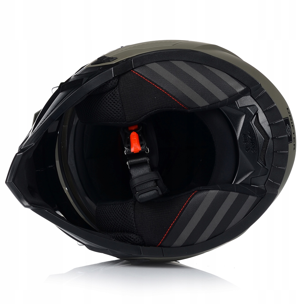 Шолом для тріалу з агресивним виглядом. Чудовий вибір для круїзерів, тріалу чи просто катання вулицями міста. Знімна щелепа та регульований і знімний козирок. Виготовлений з матеріалу KPA, що забезпечує легкість і більшу безпеку. Можливість зміни скла зі світлого на темне.