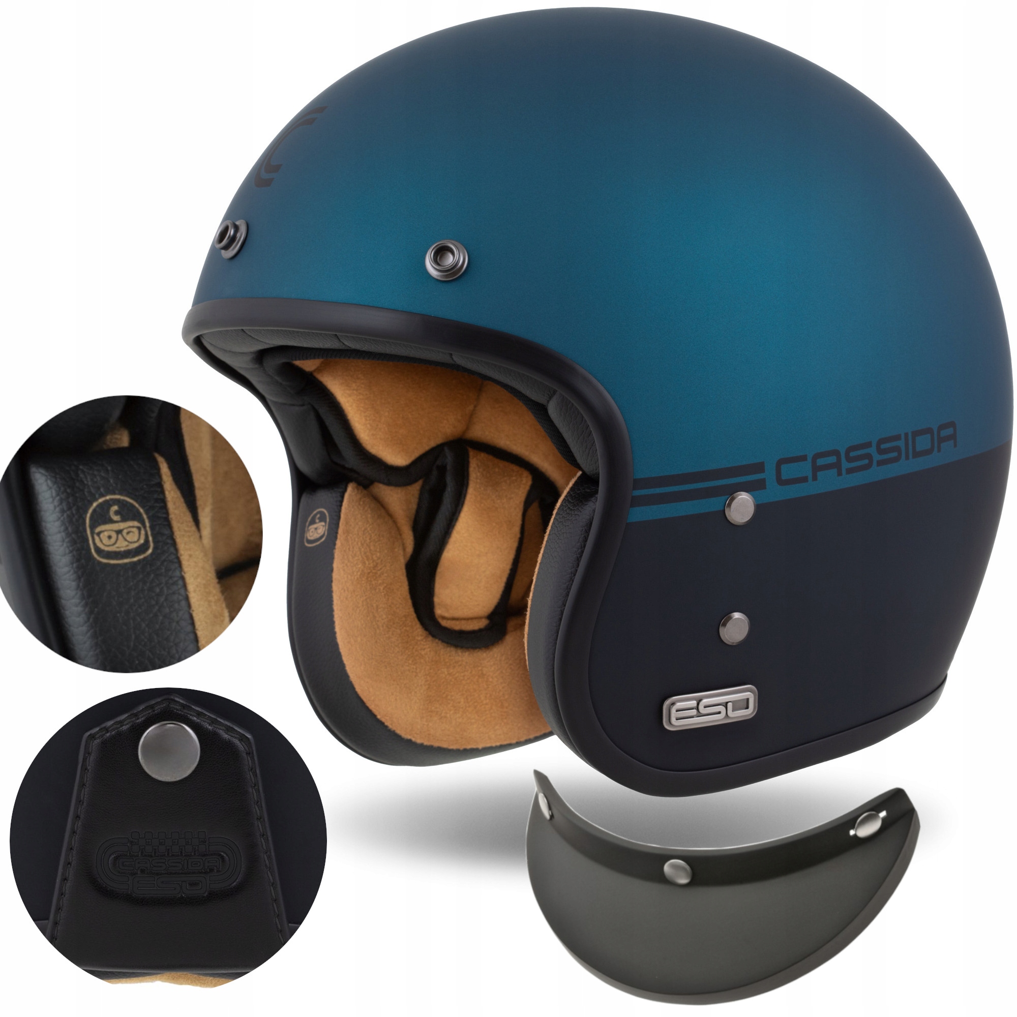 Мотоциклетний шолом Cassida Fiber ESO BLUEMAT NeoRetro для домофона та окулярів M
