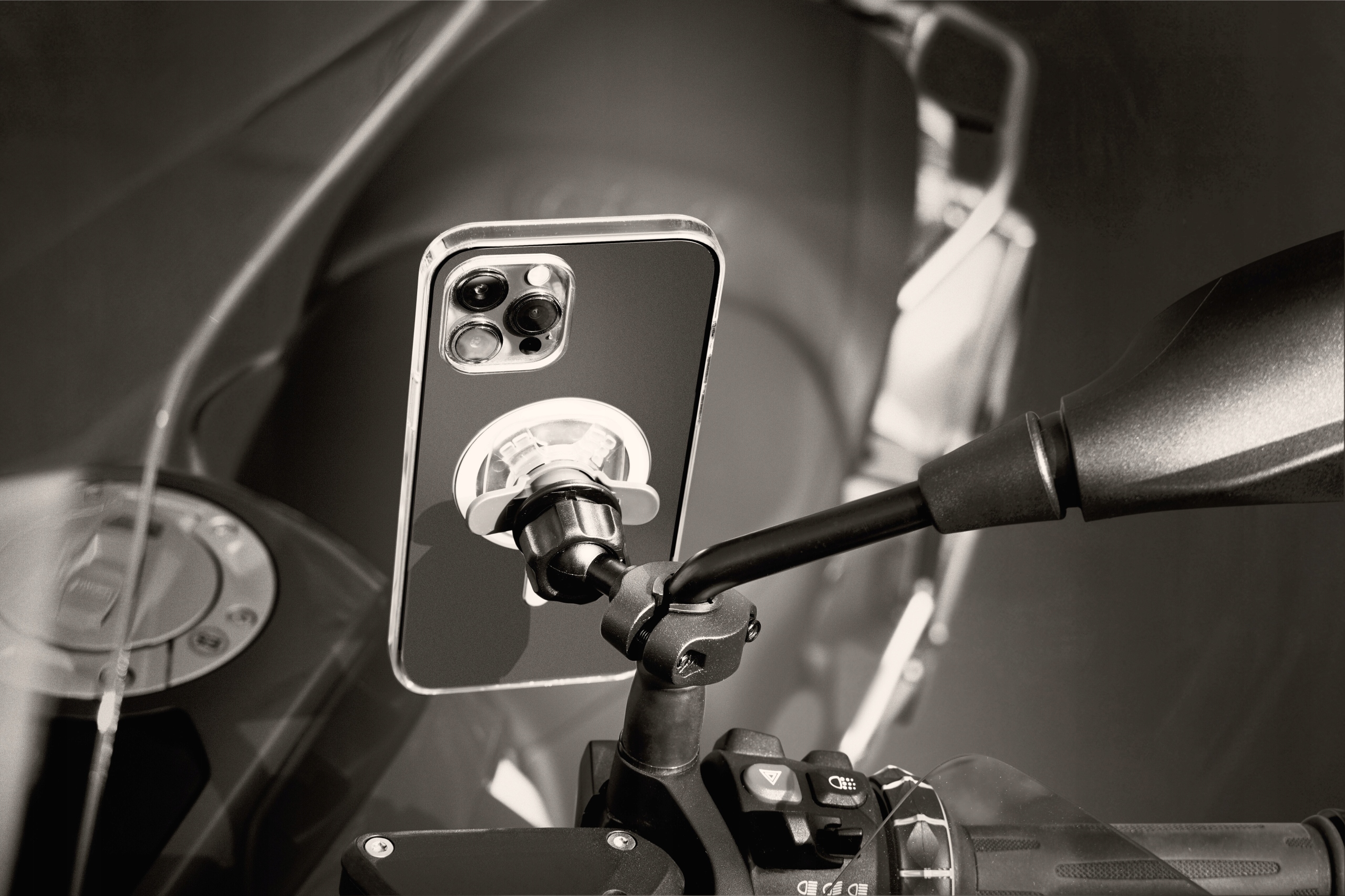 Підходить для кріплення дзеркала та поперечини на діаметрі від 9 до 18 мм. Повністю регулюється, дозволяє використовувати смартфон вертикально і горизонтально. Спеціально для аксесуарів Optiline