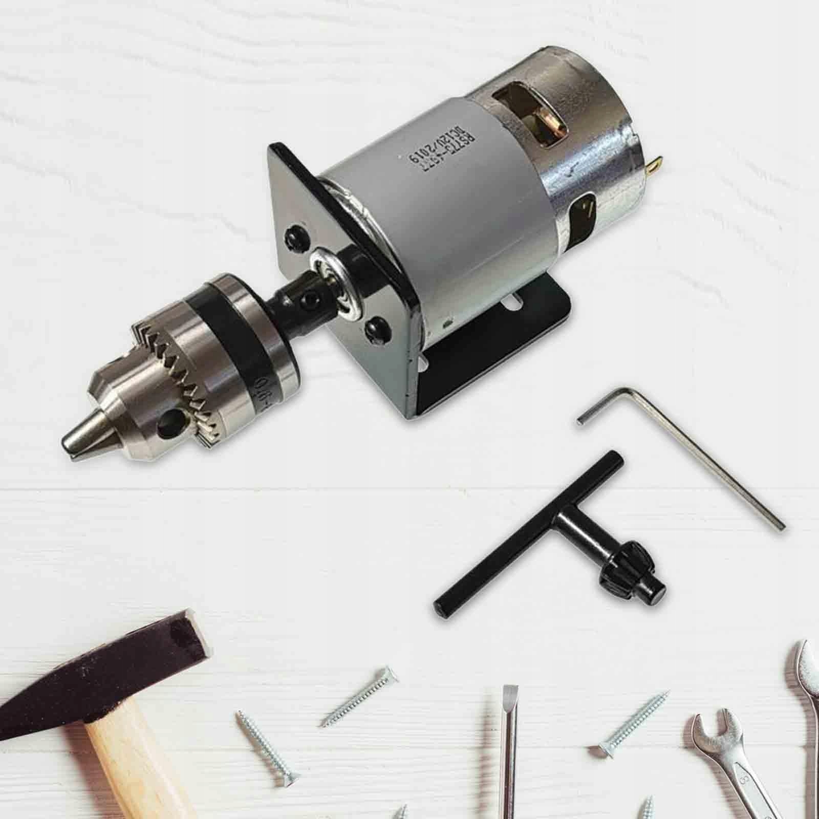 [двигун постійного струму 775] двигун постійного струму 12 В 775 з мініатюрним ручним свердлильним патроном і монтажним кронштейном. Міні-свердлильний патрон B10 або B12, опціонально.