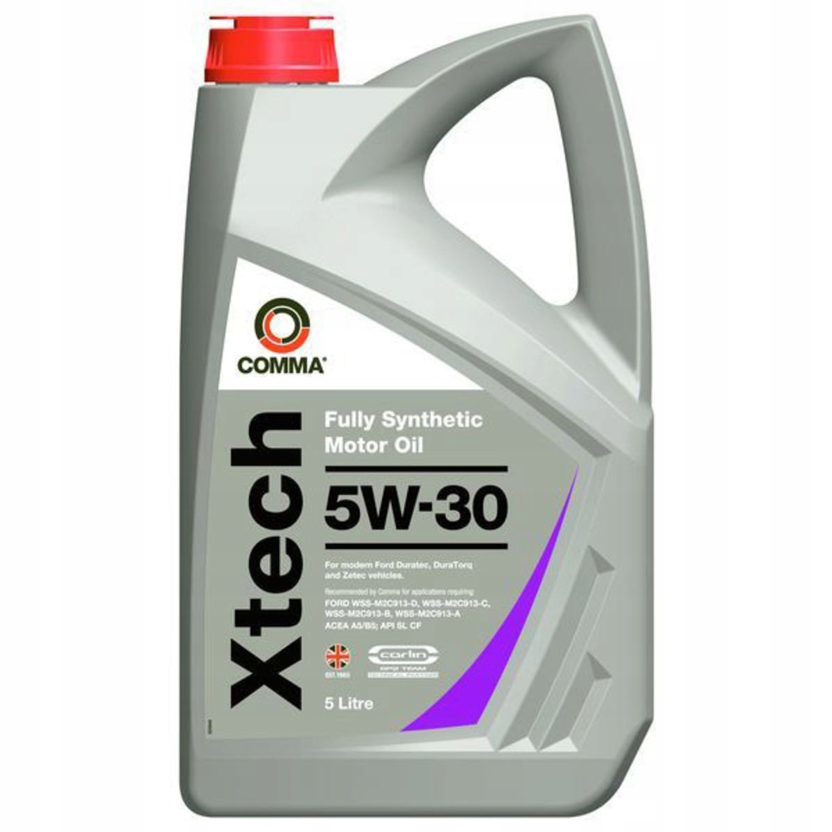Сучасна синтетична олива COMMA X-TECH з класом в'язкості 5W30 особливо рекомендована для використання в бензинових і дизельних двигунах потужних, багатоклапанних, інжекторних і каталітичних спортивних автомобілів. Особливо рекомендується для двигунів Ford, таких як Zetec, Duratec, Duratorq. Забезпечує ефективний захист сполучених поверхонь від впливу тертя, полегшує запуск і роботу двигуна при будь-яких температурних умовах. Рафінуючі добавки та диспергатори, що містяться у формулі, запобігають накопиченню вуглецевих відкладень, відкладень і лаків, підтримуючи найвищу ефективність приводного блоку. Ефективно знижує витрату палива і продовжує термін служби двигуна.
