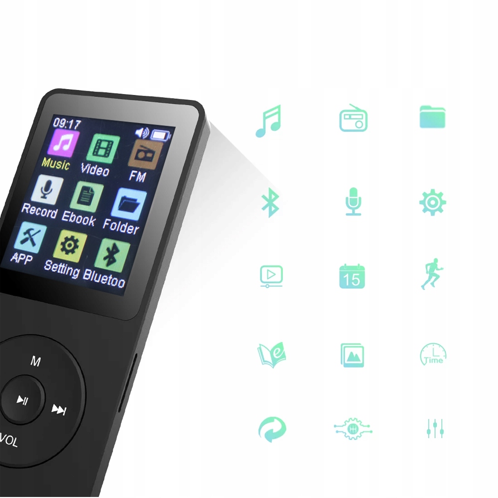 - 🔊 Більше функцій:FM-радіо, папка, Bluetooth, запис, налаштування, відео, календар, крокомір, електронна книга, фотографії, заставка з часом, повтор A-B, відтворення зі змінною швидкістю.