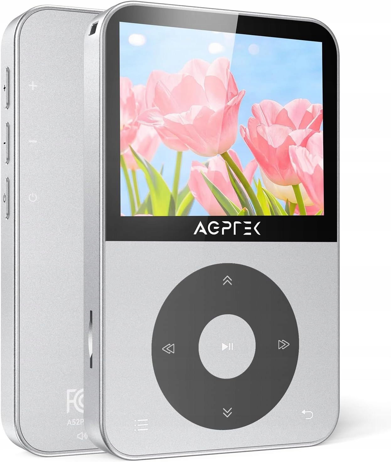 MP3-плеєр AGPTEK 64 ГБ, Bluetooth 5.3, кольоровий TFT-екран 2,3 дюйма, MP3-плеєр із навушниками, підтримує SD-карту до 128 ГБ, FM-радіо, запис, електронна книга, крокомір, сріблястий