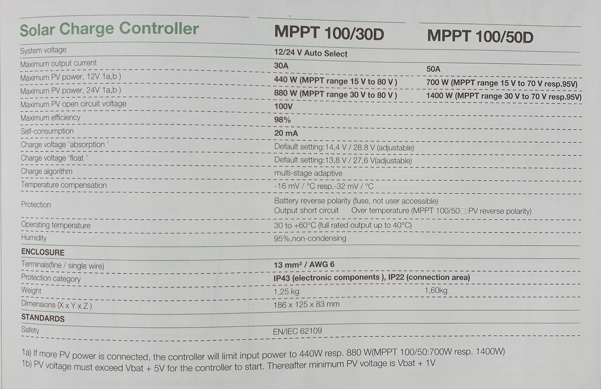Якщо підключена фотоелектрична потужність фотоелектричних панелей занадто висока, контролер обмежить потужність до 700 Вт при 12 В і 1400 Вт при 24 В .