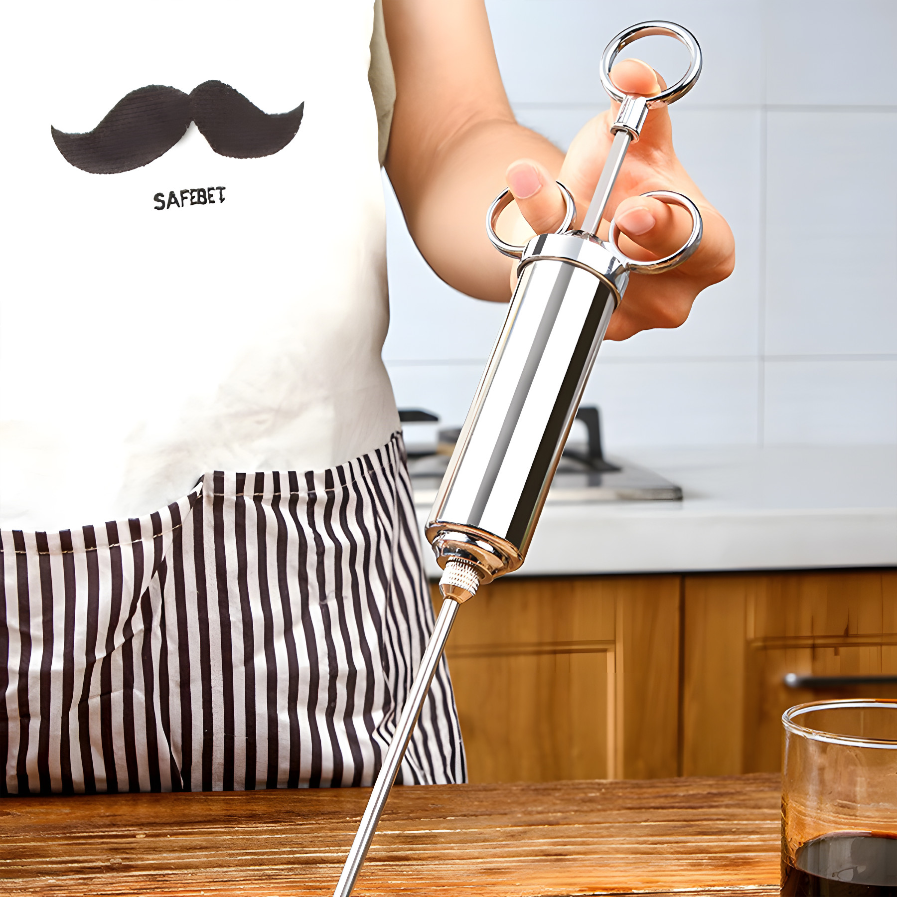 Спеціально розроблена ручка з отворами для двох пальців забезпечує зручність та точність під час використання , мінімізуючи зусилля, необхідні для застосування маринаду.