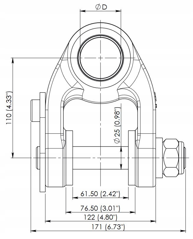 - Нижнє кріплення (для ротатора) ): ширина - 61,5/76,5 мм, діаметр штифта - ø 25 мм