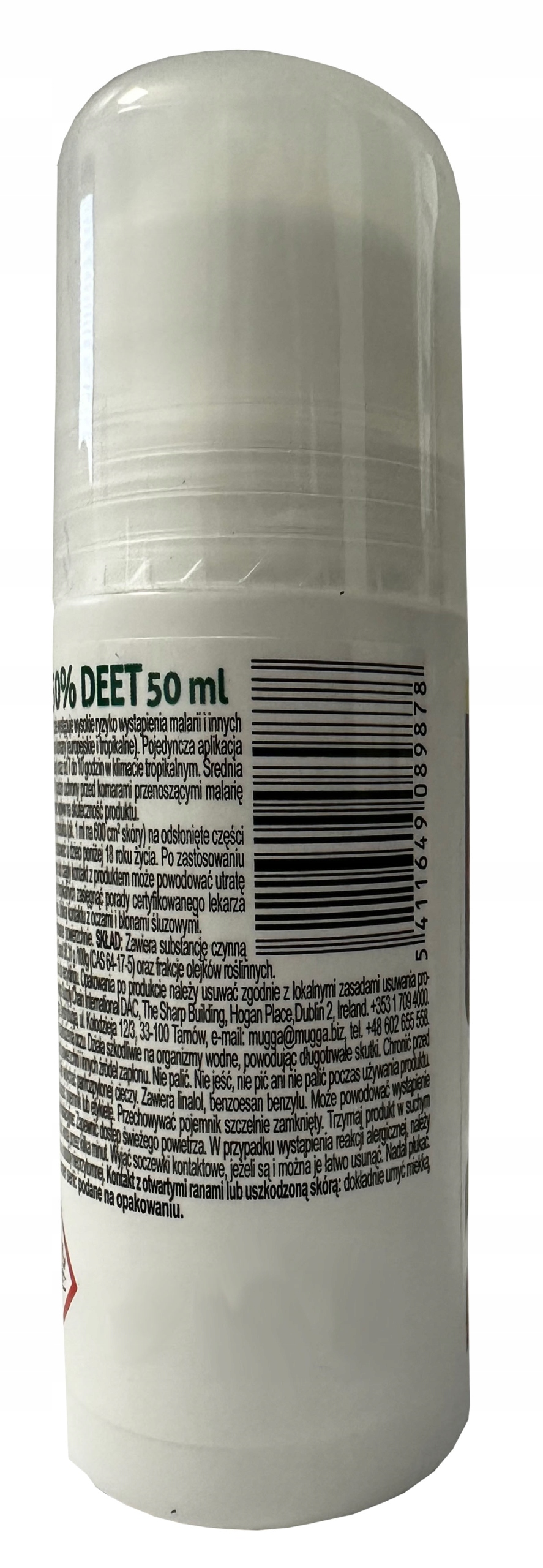 roll-on mugga 50%-це стримуючий фактор для кліщів, комарів, мух, суки, мух, куцмані, комарів та кліщів. Одне використання захищає шкіру від 7-12 годин залежно від клімату. Підготовка внаслідок його концентрації в основному призначена для районів, де високий ризик малярії та інших небезпечних захворювань, що передаються комарами. Підготовка приємний евкаліпт і високий час дії, він не є жирним і легко застосувати. рослинні олії. Такі фактори, як температура та вологість та пітливість шкіри, можуть впливати на ефективність продукту. Біоцидальні продукти слід використовувати з запобіжними заходами. Перед кожним використанням прочитайте етикетку та інформацію про продукт. Mugga ідеально підходить як для тропічного, так і для європейського клімату і призначений насамперед для тих, хто хоче захистити себе від комах, серед інших Поставка -офти; Малярія, Жовта лихоманка, Інші небезпечні захворювання тропічної зони; Pallyballowców; Тропічні та європейські комарі, кліщів, мух, комарів, мух, Куцмараї, кліщів. Для дорослих з 18 років ..