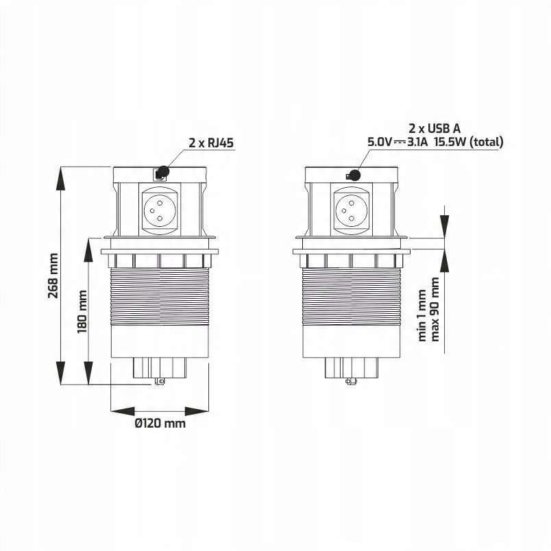 Multi Box - це сучасна меблева розетка, заглиблена на кухню або офіс із висувною панеллю. Відбувається в білому або чорному кольорі. RJ45; У складі робочої стільниці на робочій стороні годувались своєю поверхнею. Як змішувач, ноутбук або смартфон.