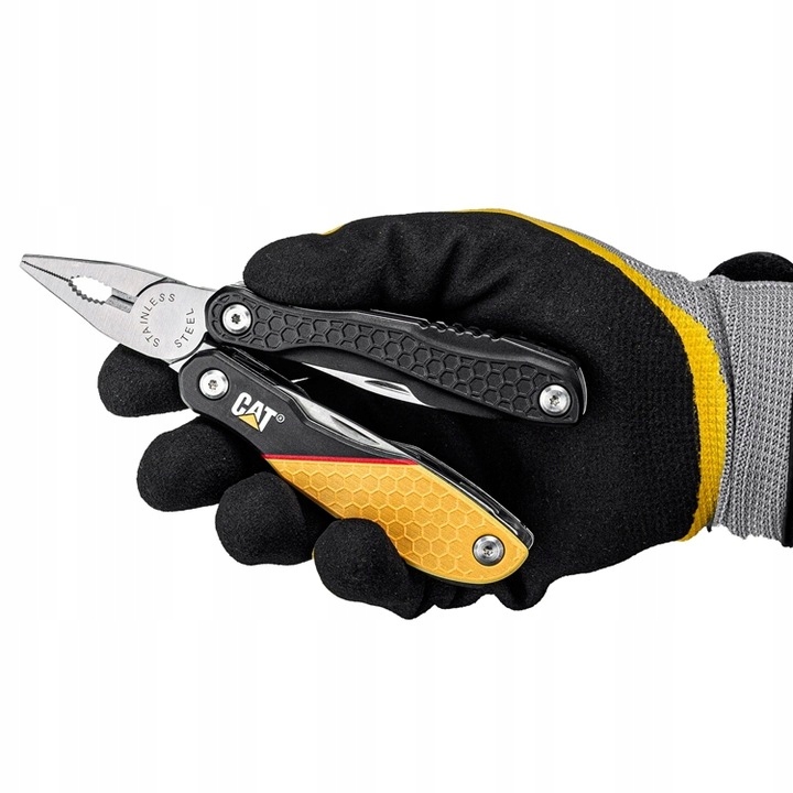 CAT Multi Tool 13-in-1 має багато корисних інструментів. Під двоколірним анодованим алюмінієвим покриттям є багатофункціональне рішення для роботи, ігор на природі, в автомобілі чи кемпінгу. Тринадцять корисних інструментів поміщені в легкий алюмінієвий корпус. Інструменти з нержавіючої сталі стійкі до корозії, а регульовані гвинти дають змогу затягувати все за потреби.