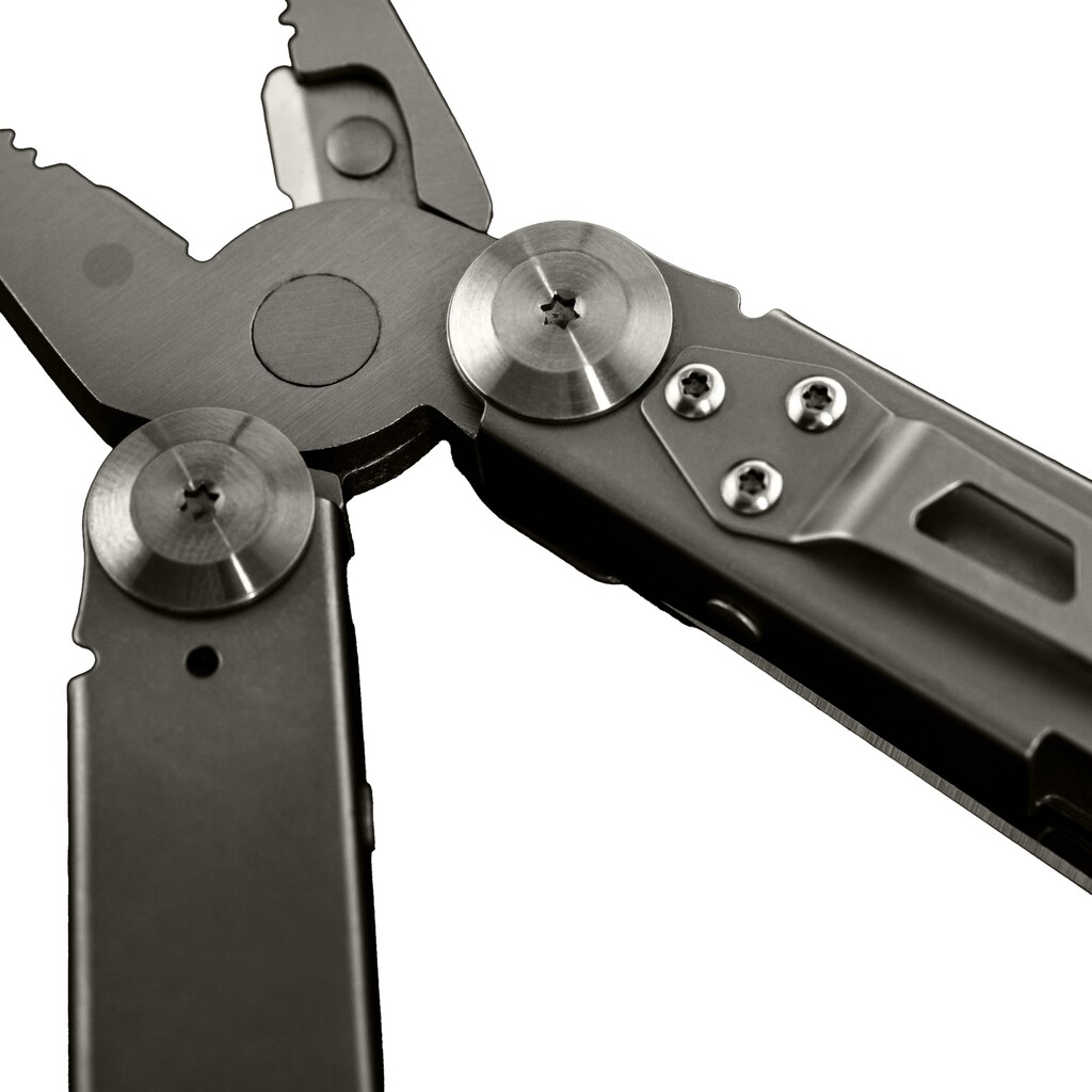 Мультитул містить 14 практичних інструментів, серед яких: плоскогубці, ніж з гладким лезом, пилка по дереву, різак для дроту, викрутки, напилок і розгортка. Основні інструменти - ніж і пила - оснащені функцією Liner Lock, яка запобігає випадковому складанню під час роботи.